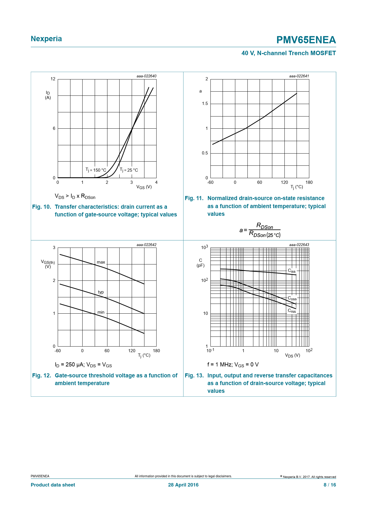 | Pages / Page | 16 / 8 — Nexperia. PMV65ENEA. 40 V, N-channel Trench MOSFET. Fig. 11. Normalized … |