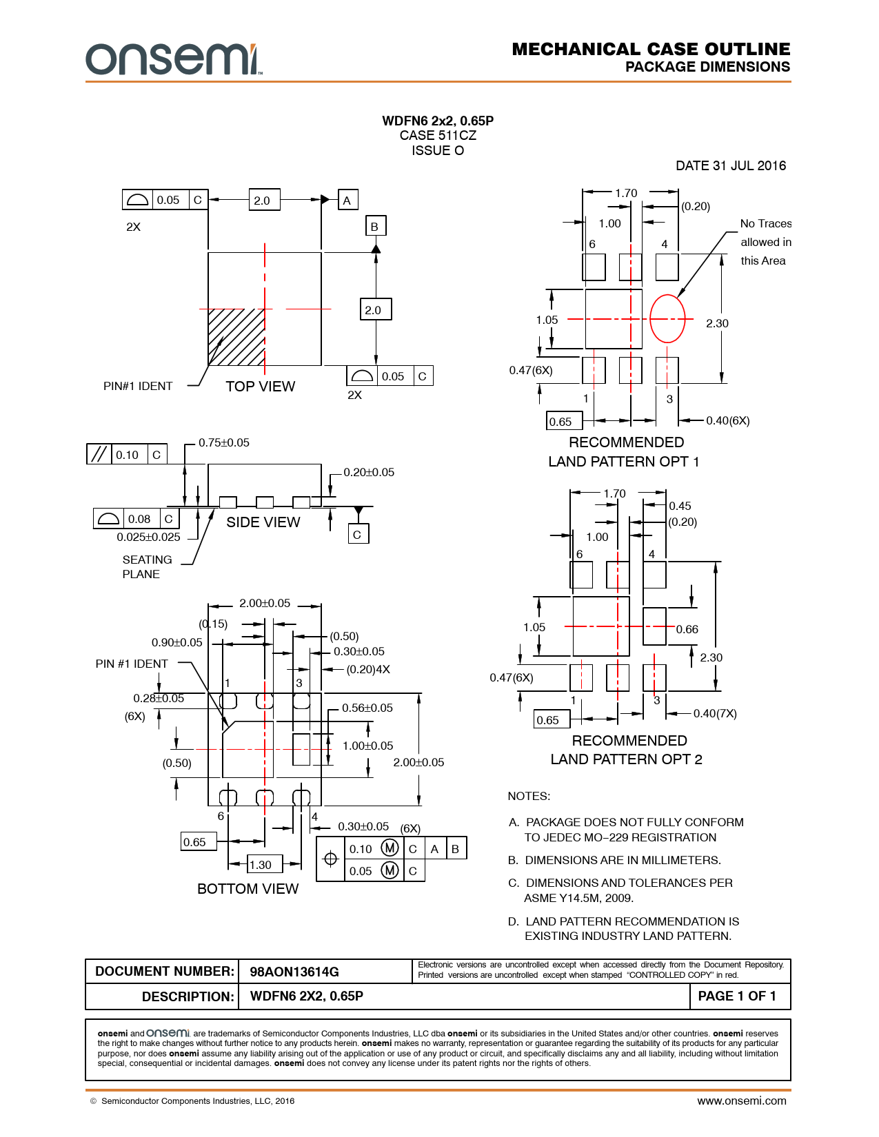 DESCRIPTION: WDFN6 2X2, 0.65P PAGE 1 OF 1 onsemi