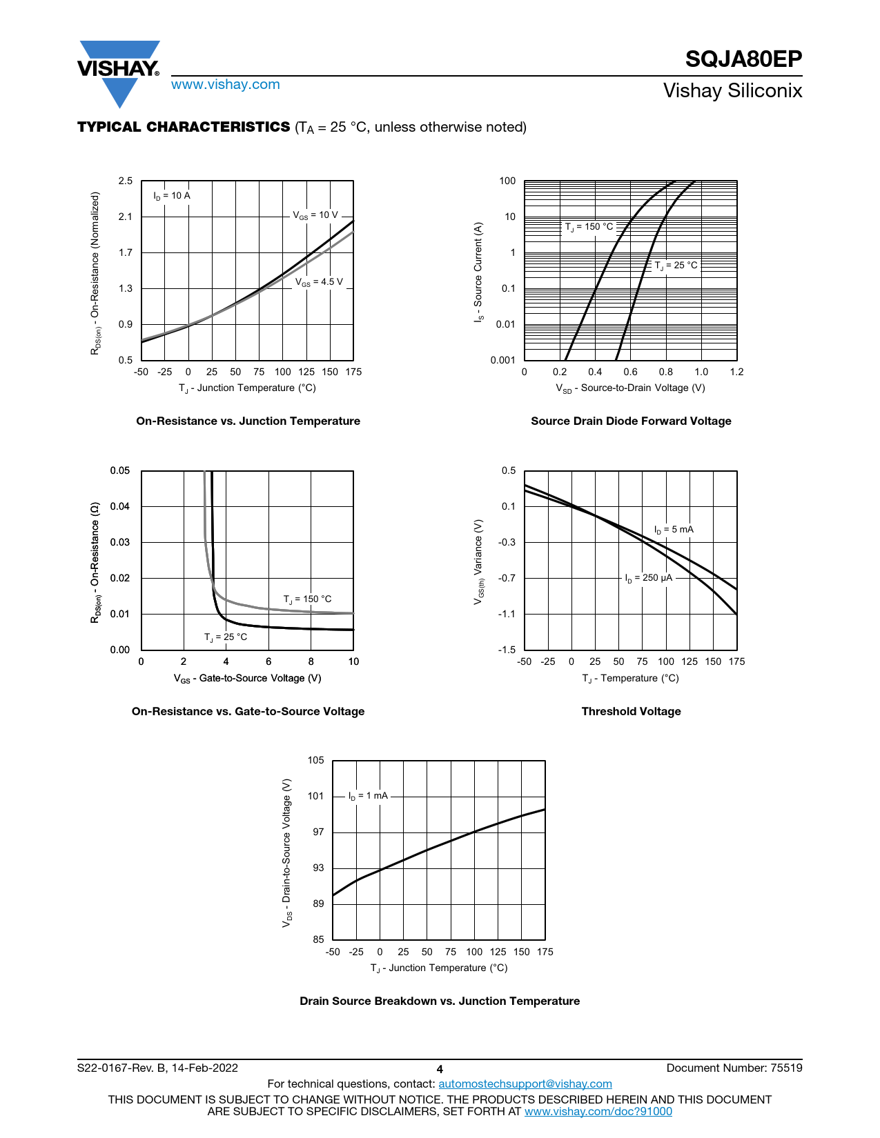 SQJA80EP TYPICAL CHARACTERISTICS On-Resistance vs Junction Temperature Source Drain Diode Forward Voltage