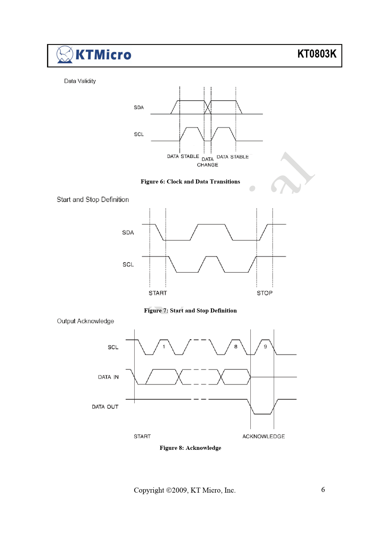 | Pages / Page | 18 / 6 — KT0803K. Figure 6: Clock and Data Transitions. Figure 7: Start and Stop … |