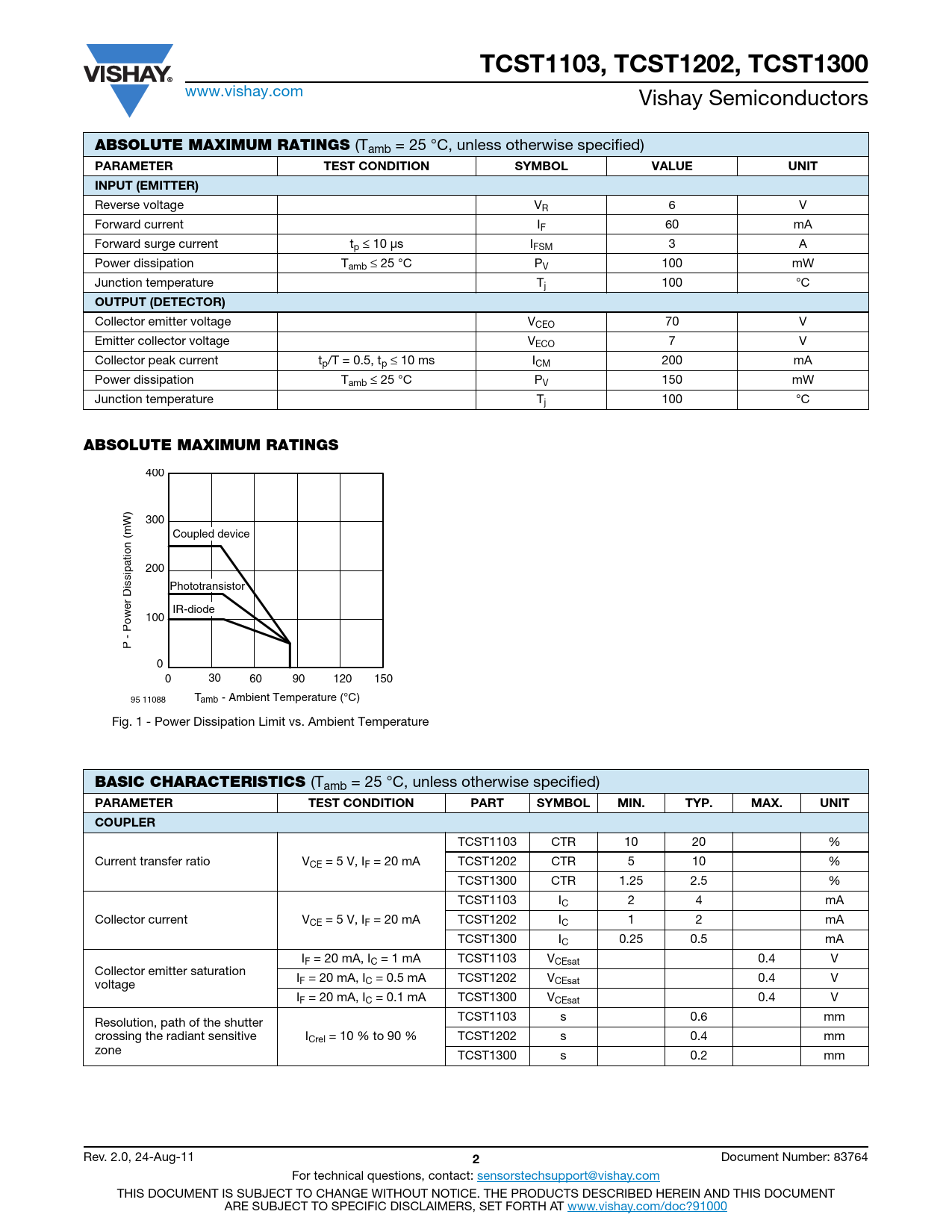 Pages / Page7 / 2 — TCST1103, TCST1202, TCST1300. ABSOLUTE MAXIMUM RATINGS. PARAMETER. TEST …