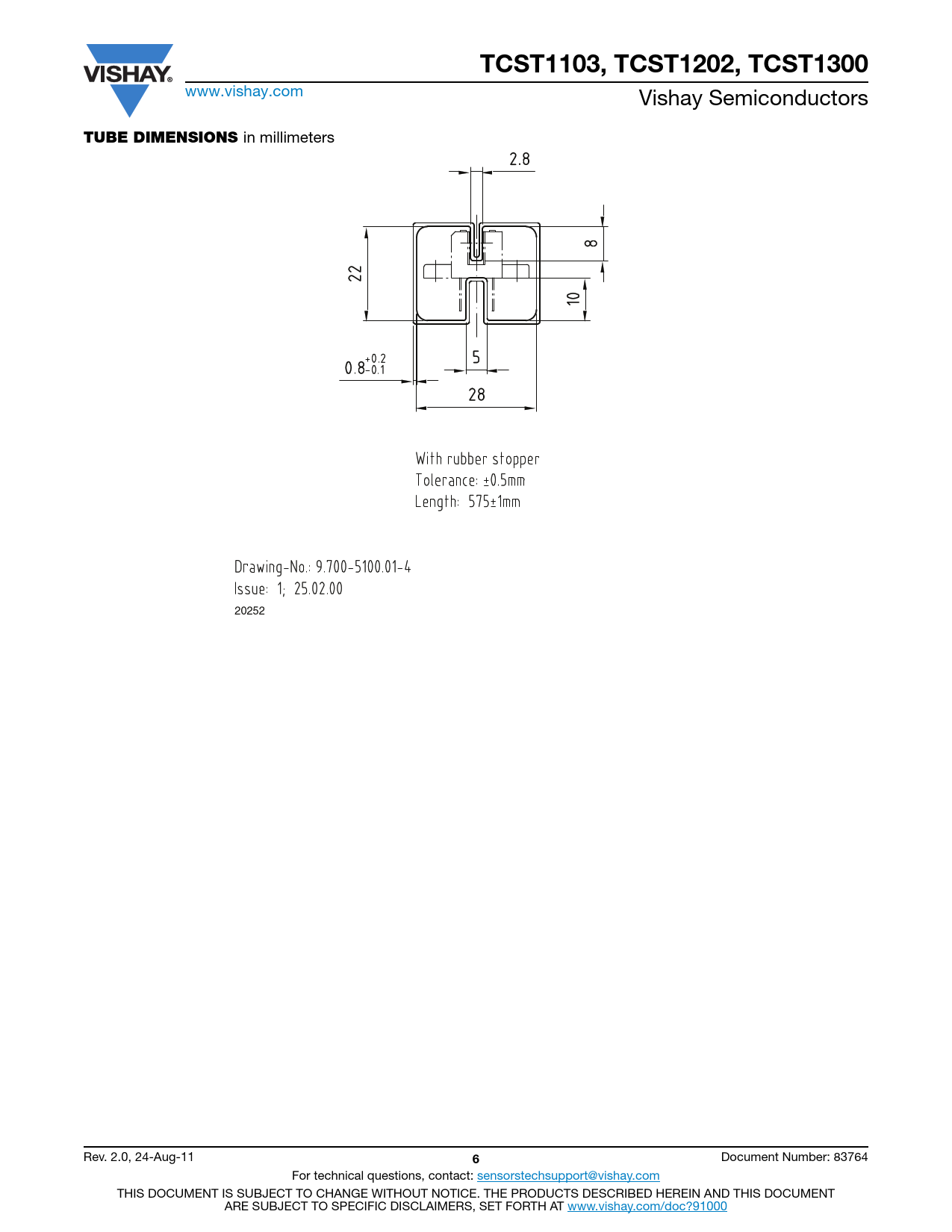 Pages / Page7 / 6 — TCST1103, TCST1202, TCST1300. TUBE DIMENSIONS