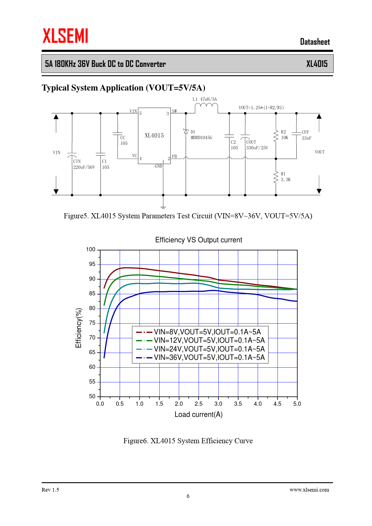Datasheet 5A 180KHz 36V Buck DC to DC Converter XL4015 Typical System Application (VOUT=5V/5A)