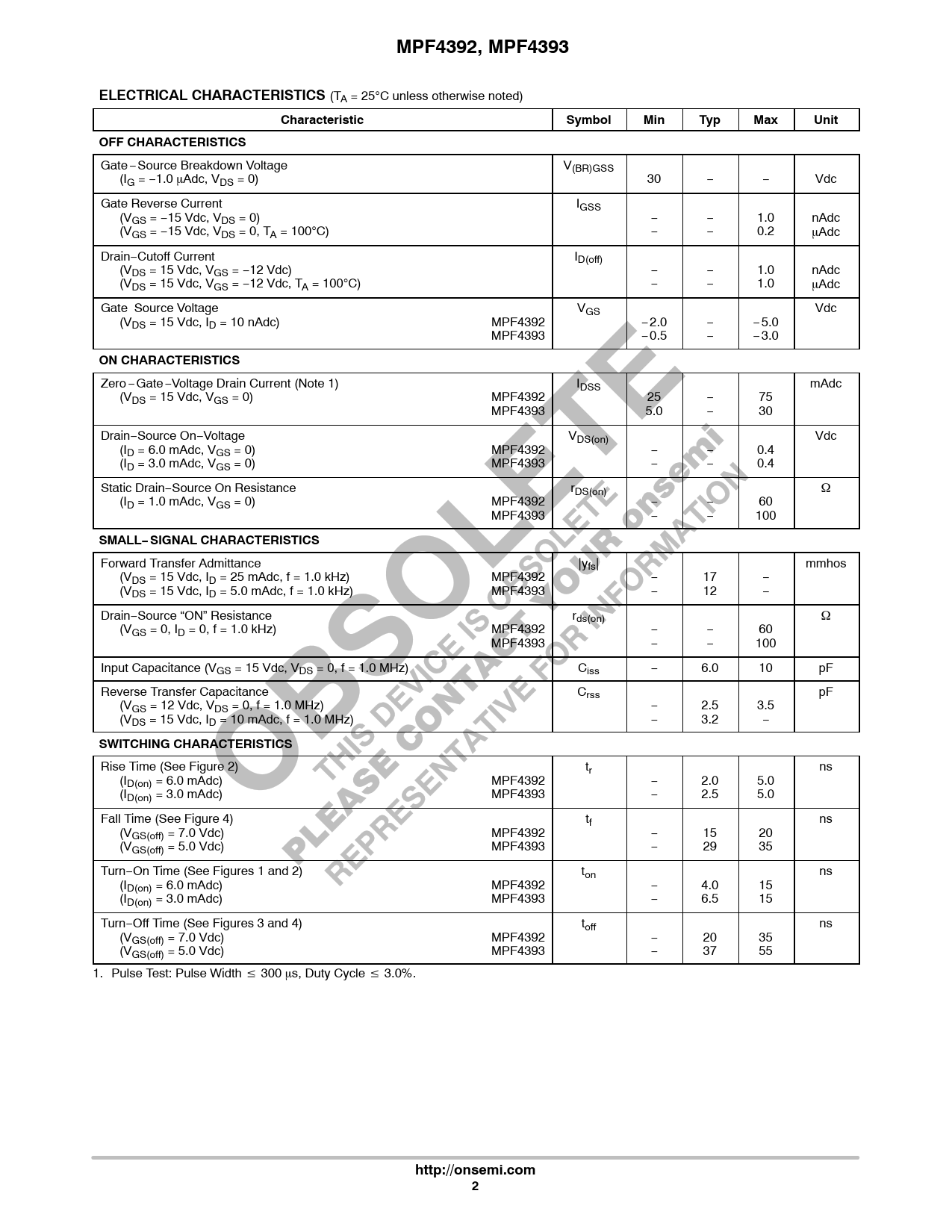 | Pages / Page | 6 / 2 — MPF4392, MPF4393. ELECTRICAL CHARACTERISTICS. Characteristic. Symbol. … |
