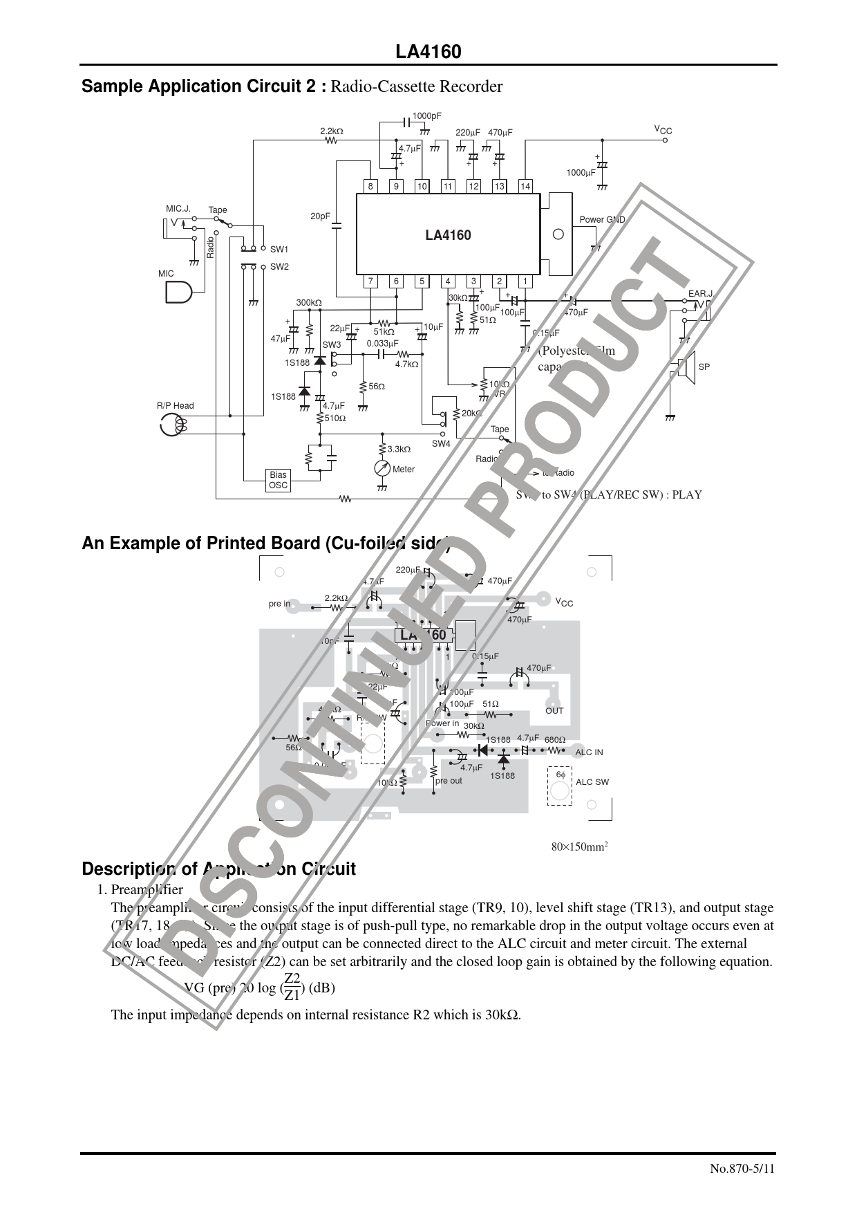 Pages / Page11 / 5 — LA4160. Sample Application Circuit 2 : Radio-Cassette Recorder. 1000pF. …