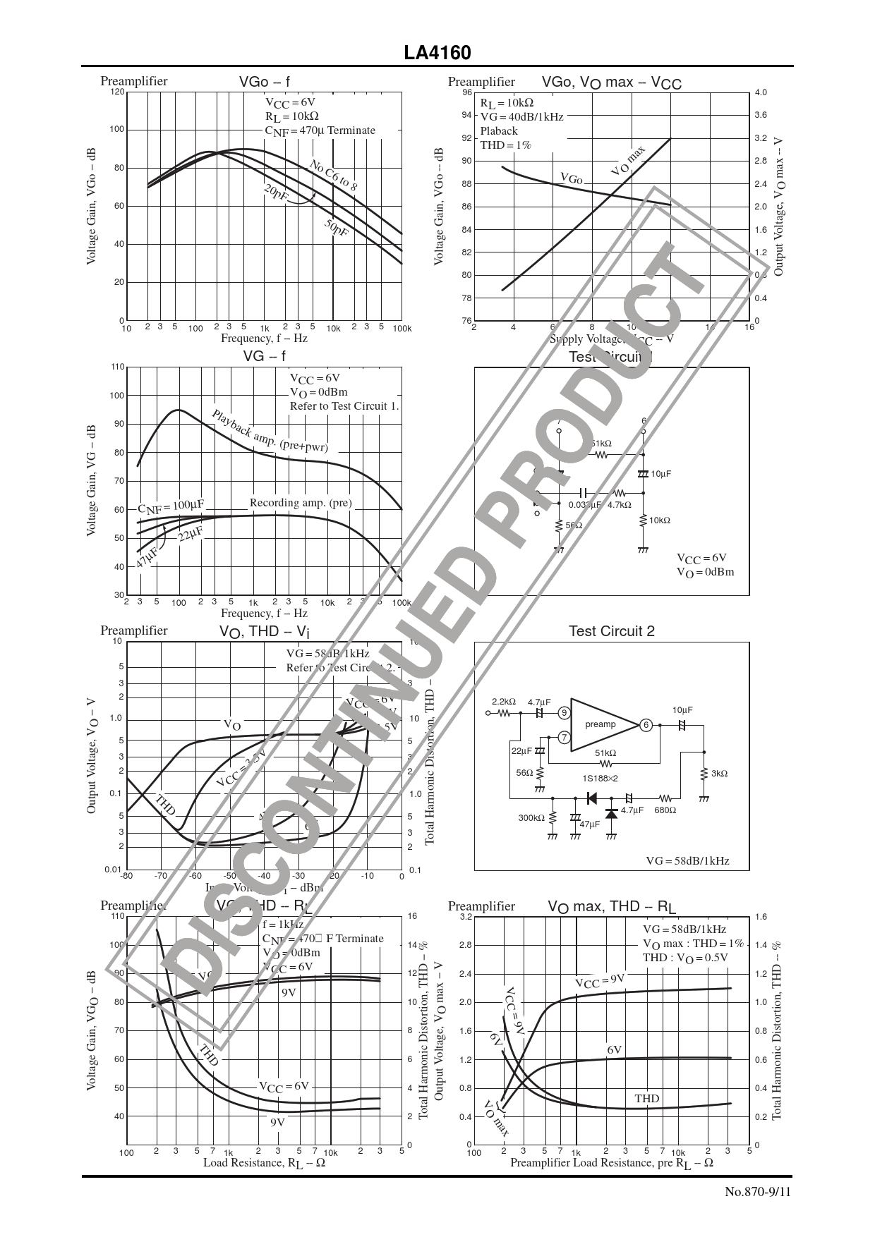LA4160. 120 No 80 C6 20p to F 94. 92 Voltage Gain, VGo -dB Voltage Gain, VGo -dB 96 VCC = 6V. RL = 10kΩ