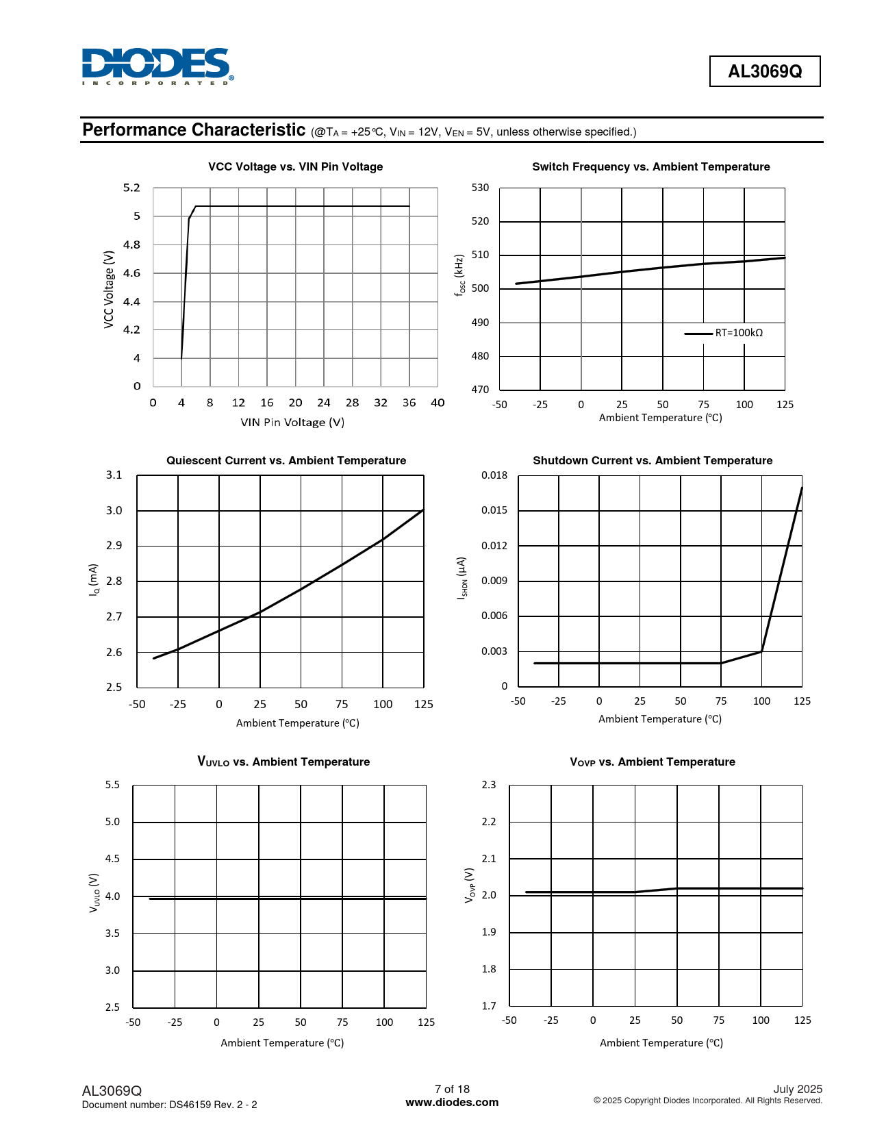 AL3069Q. Performance Characteristic. VCC Voltage vs. VIN Pin Voltage Switch Frequency vs. Ambient Temperature
