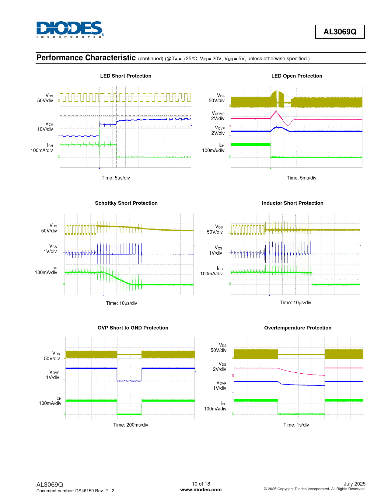 VDS 50V/div VDS 50V/div VDS 2V/div VOVP 1V/div VOVP 1V/div ICH 100mA/div ICH 100mA/div Time: 200ms/div Time: 1s/div AL3069Q 10 of 18 July 2025 Document number: DS46159 Rev. 2 - 2