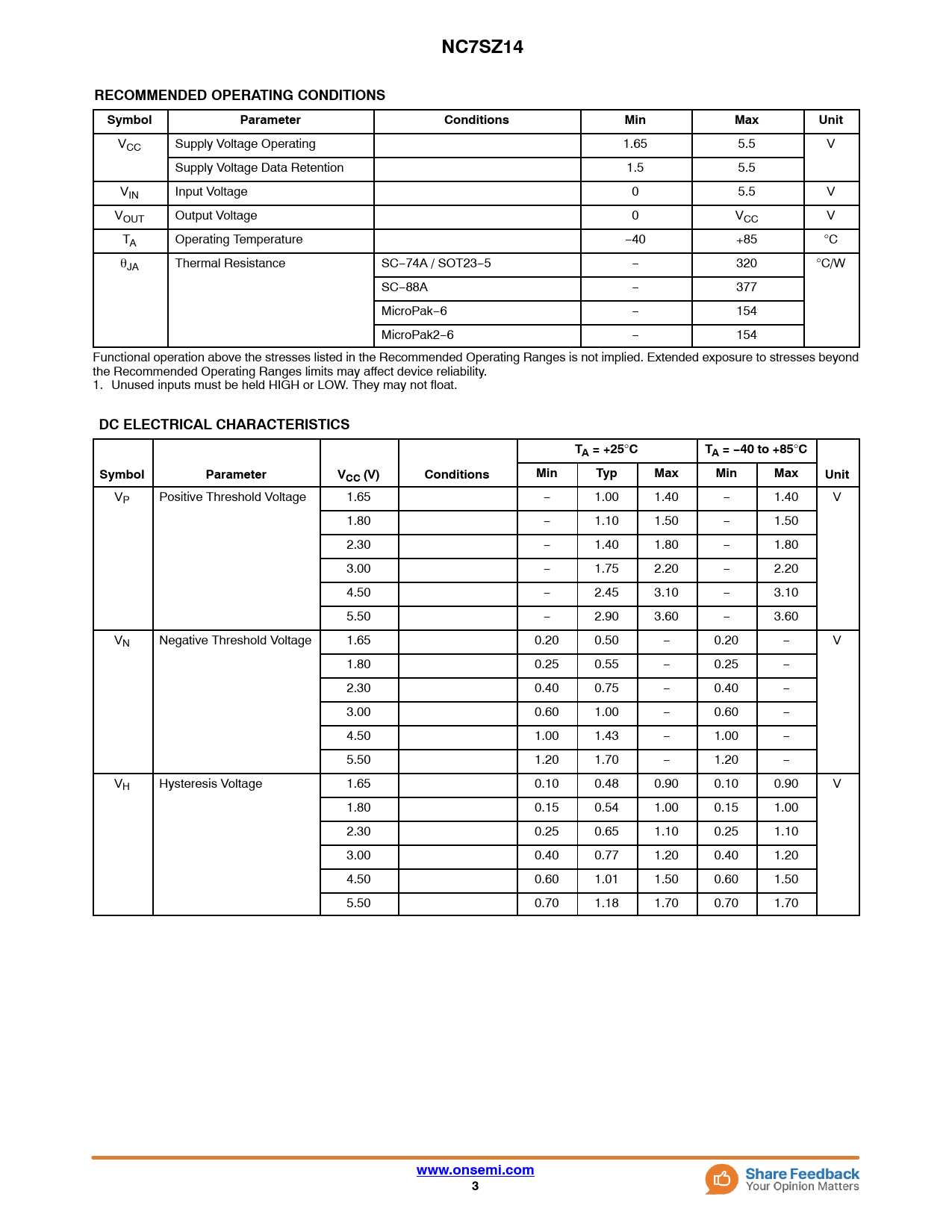 Datasheet NC7SZ14 (ON Semiconductor) - 3