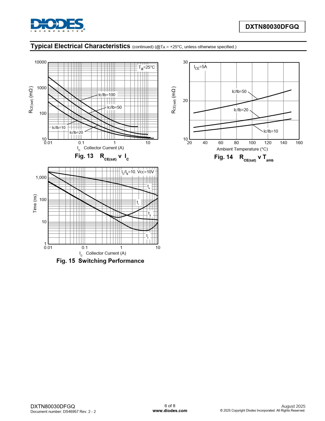 DXTN80030DFGQ. Typical Electrical Characteristics. Fig. 13 R. v I. Fig. 14 R. CE(sat). amb. Fig. 15 Switching Performance
