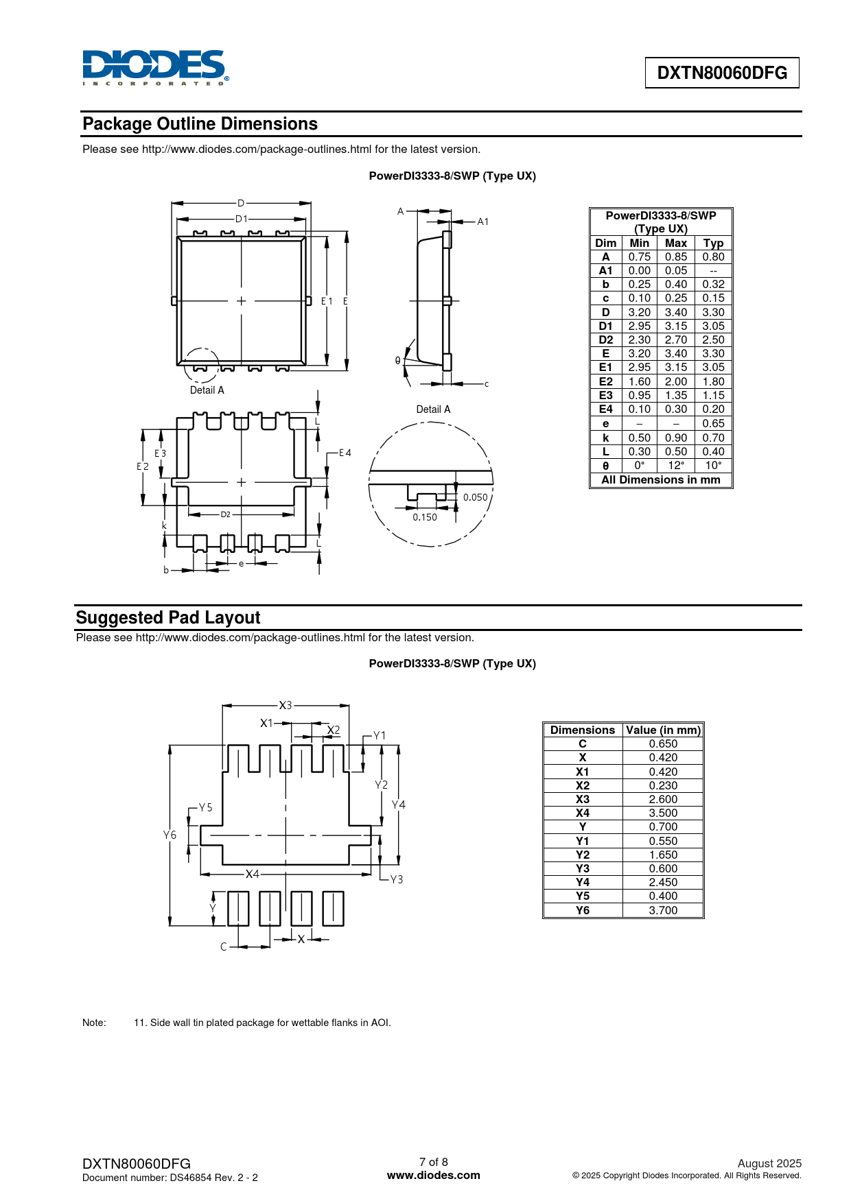 DXTN80060DFG. Package Outline Dimensions. PowerDI3333-8/SWP (Type UX). PowerDI3333-8/SWP. (Type UX). Dim Min. Max. Typ