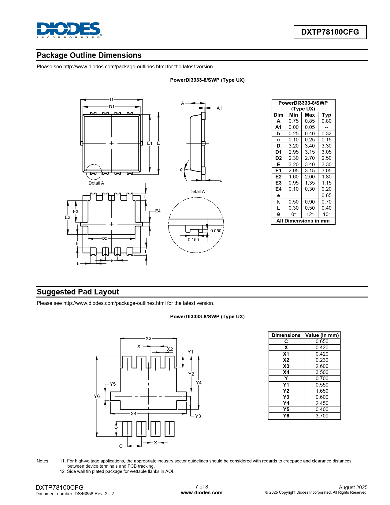 DXTP78100CFG. Package Outline Dimensions. PowerDI3333-8/SWP (Type UX). PowerDI3333-8/SWP. (Type UX). Dim Min Max. Typ