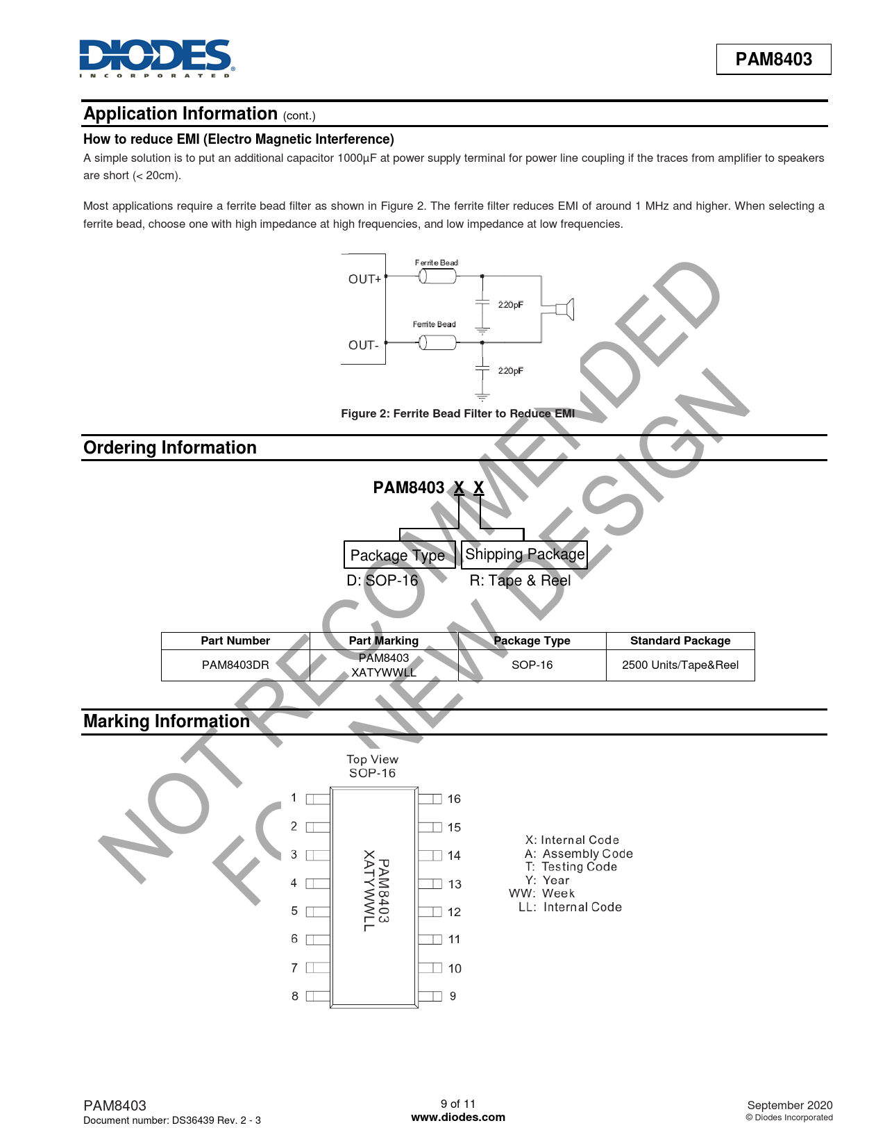Figure 2: Ferrite Bead Filter to Reduce EMI Ordering Information PAM8403 X X