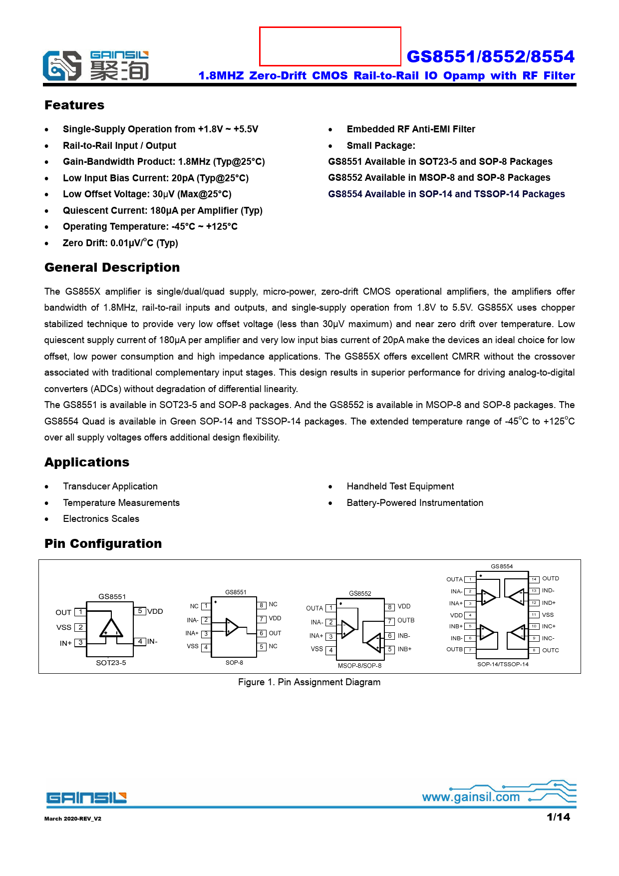Datasheet GS8551, GS8552, GS8554 (Gainsil)