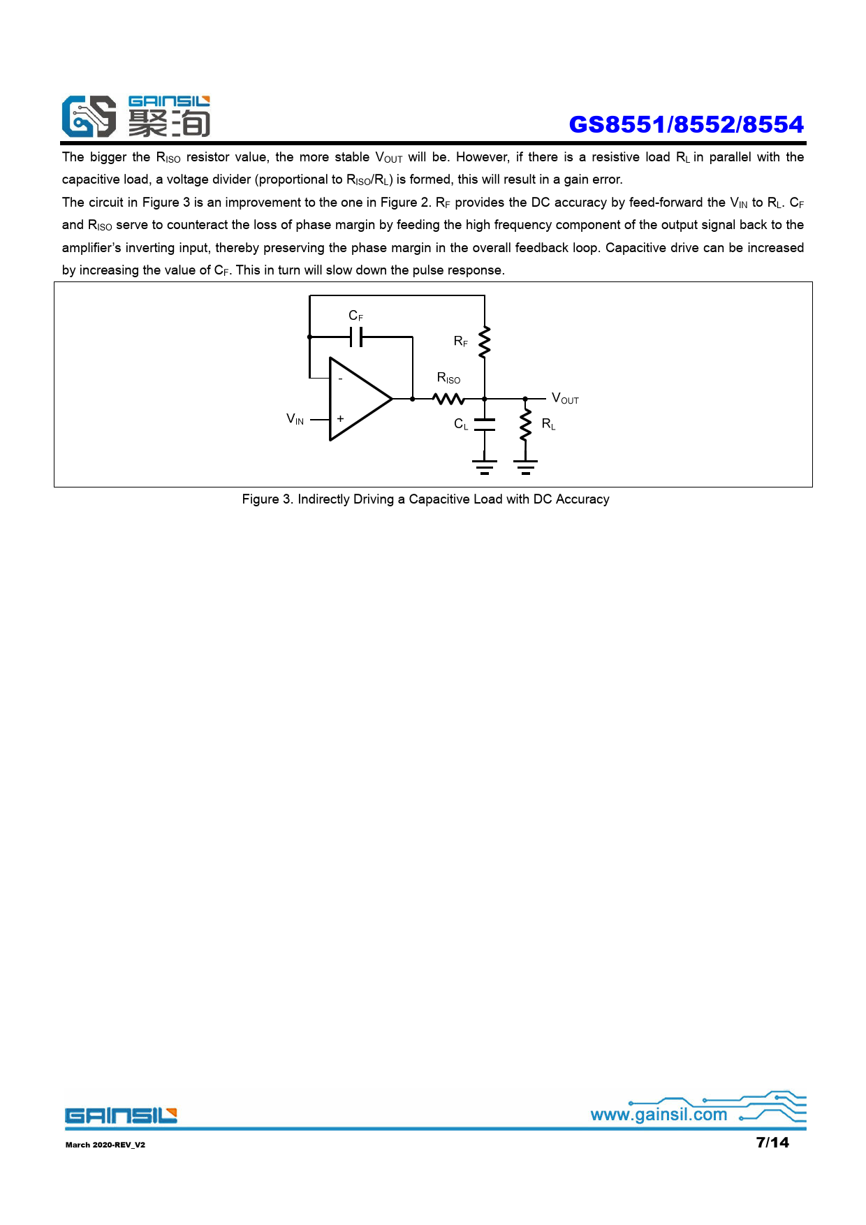 GS8551/8552/8554. The. bigger. the. RISO. resistor. value,. the. more. stable. VOUT. will. be. However,. if. there. is. a. resistive. load. RL. in. parallel. with. the