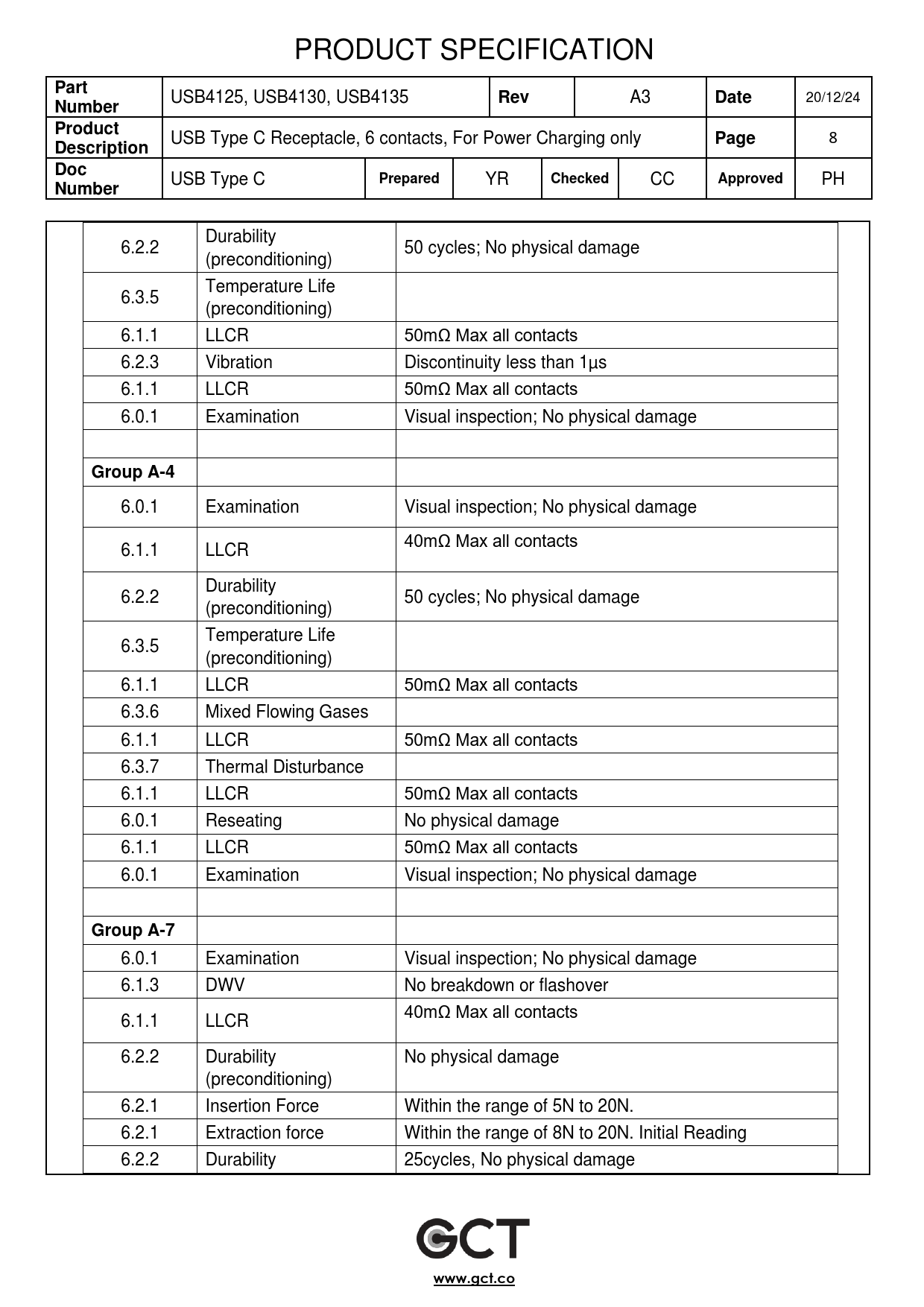 Part Rev Date Number Product Page Description Doc Prepared Checked Approved Number Group A-4 Group A-7 www.gct.co