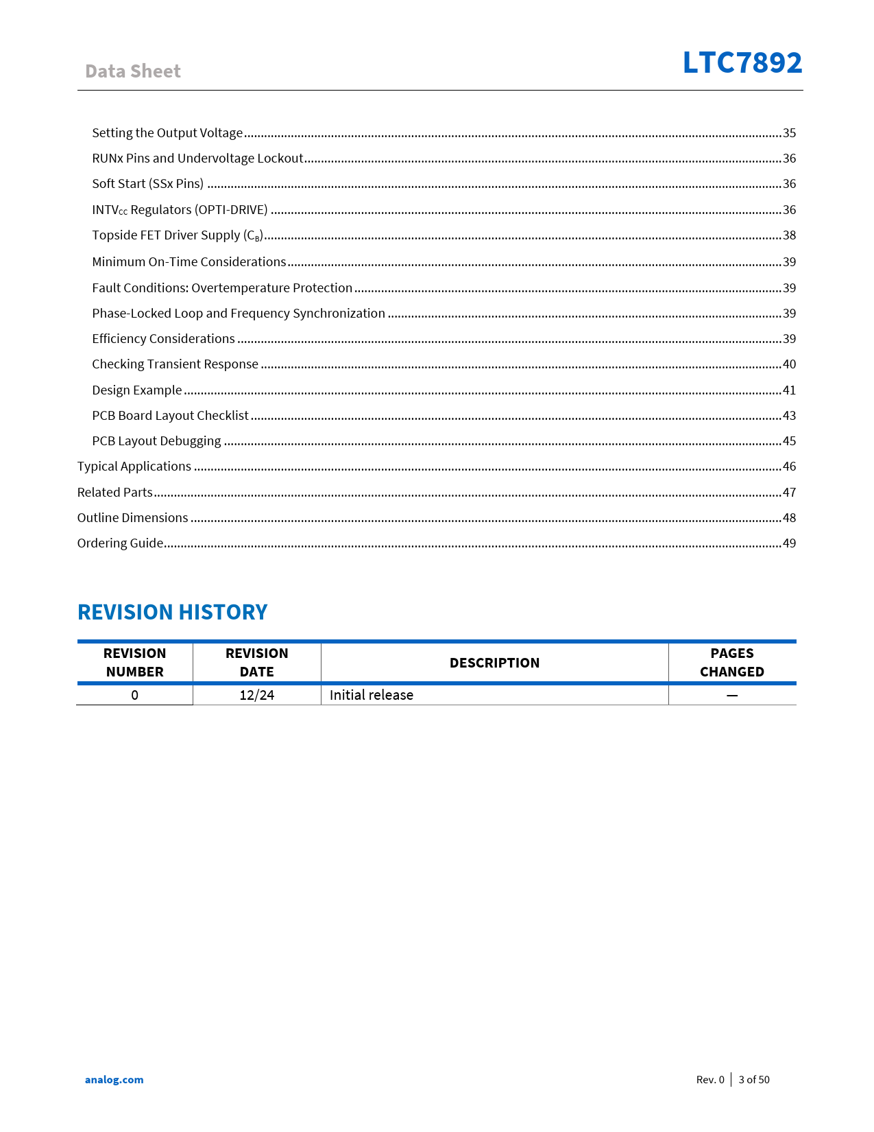 Pages / Page50 / 3 — Data Sheet. LTC7892. REVISION HISTORY. REVISION. PAGES. DESCRIPTION. …