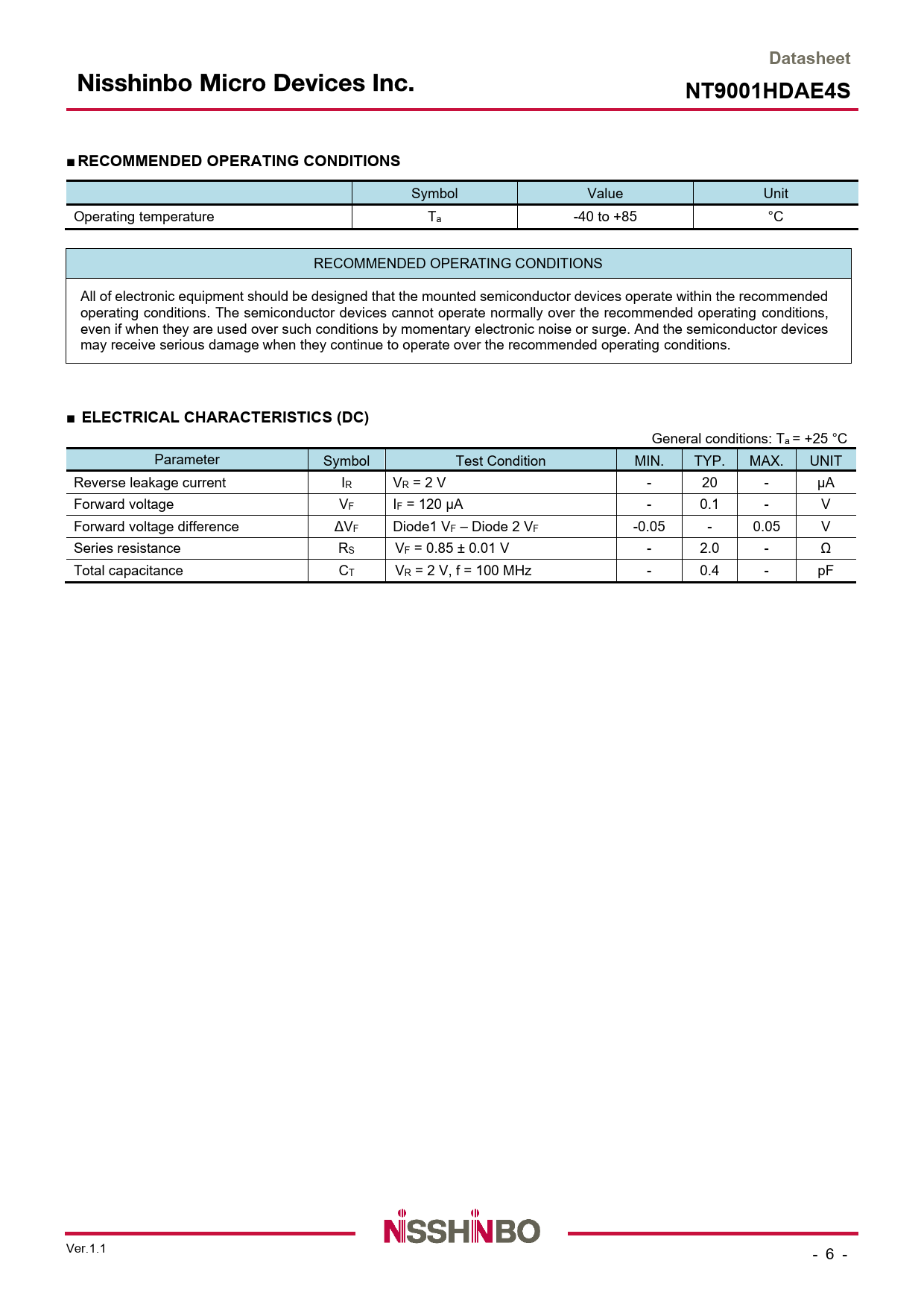Pages / Page15 / 6 — Datasheet. NT9001HDAE4S. ■ RECOMMENDED OPERATING CONDITIONS. ■ ELECTRICAL …
