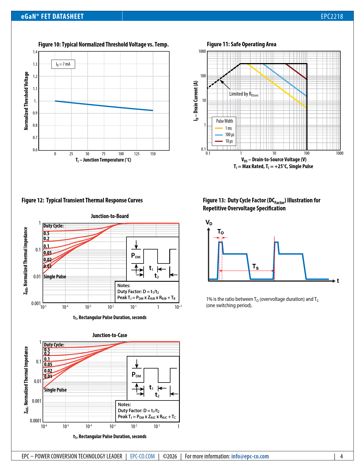 eGaN® FET DATASHEET. Figure 10: Typical Normalized Threshold Voltage vs. Temp. Figure 11: Safe Operating Area