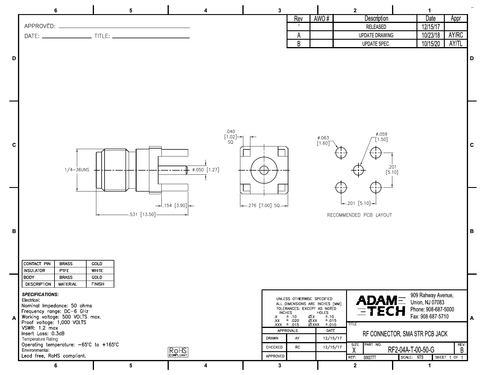 | Description | Radio Frequency Connector SMA Jack STR 50 OHM PCB |