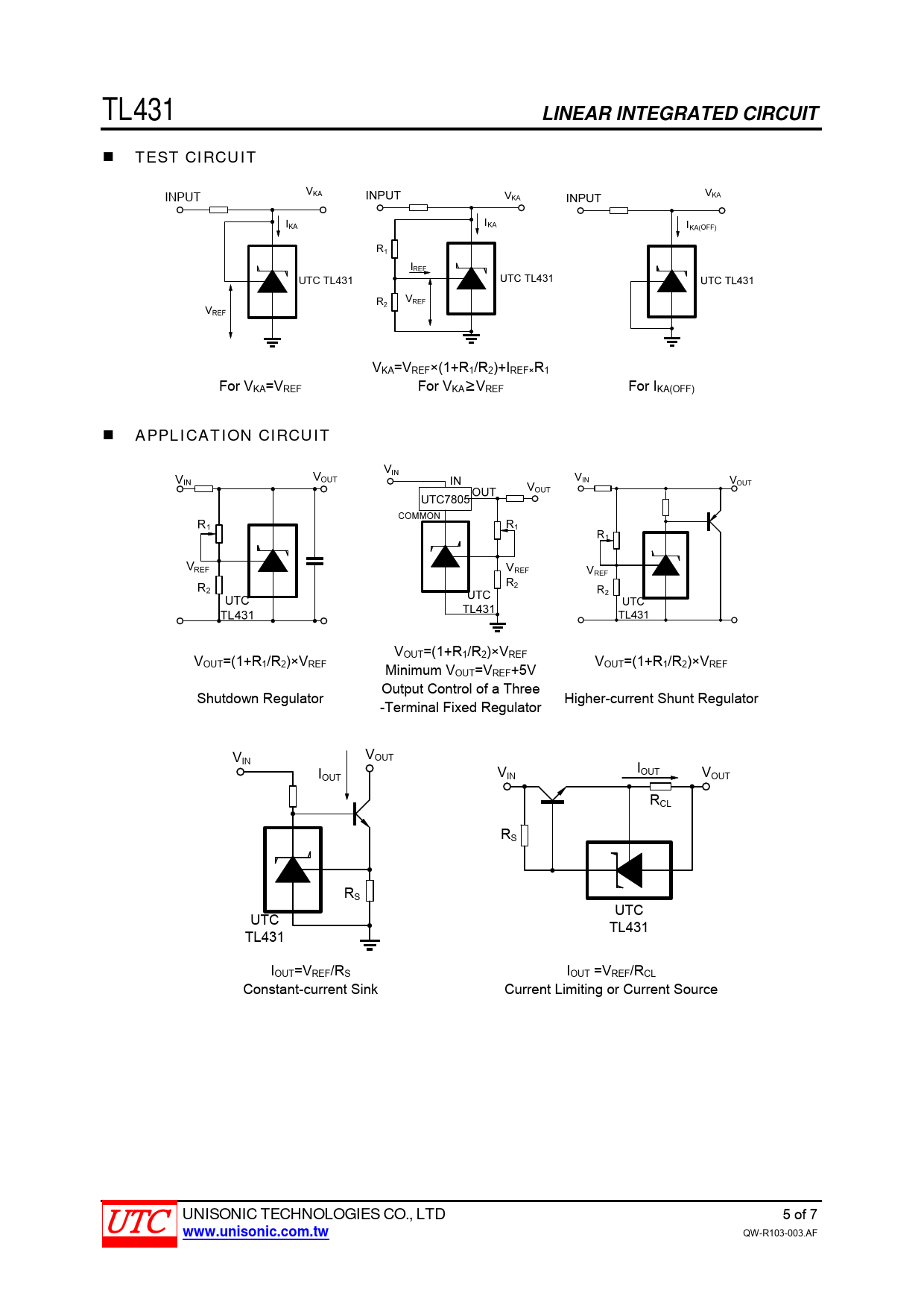 Pages / Page7 / 5 — TL431. LINEAR INTEGRATED CIRCUIT. www.unisonic.com.tw