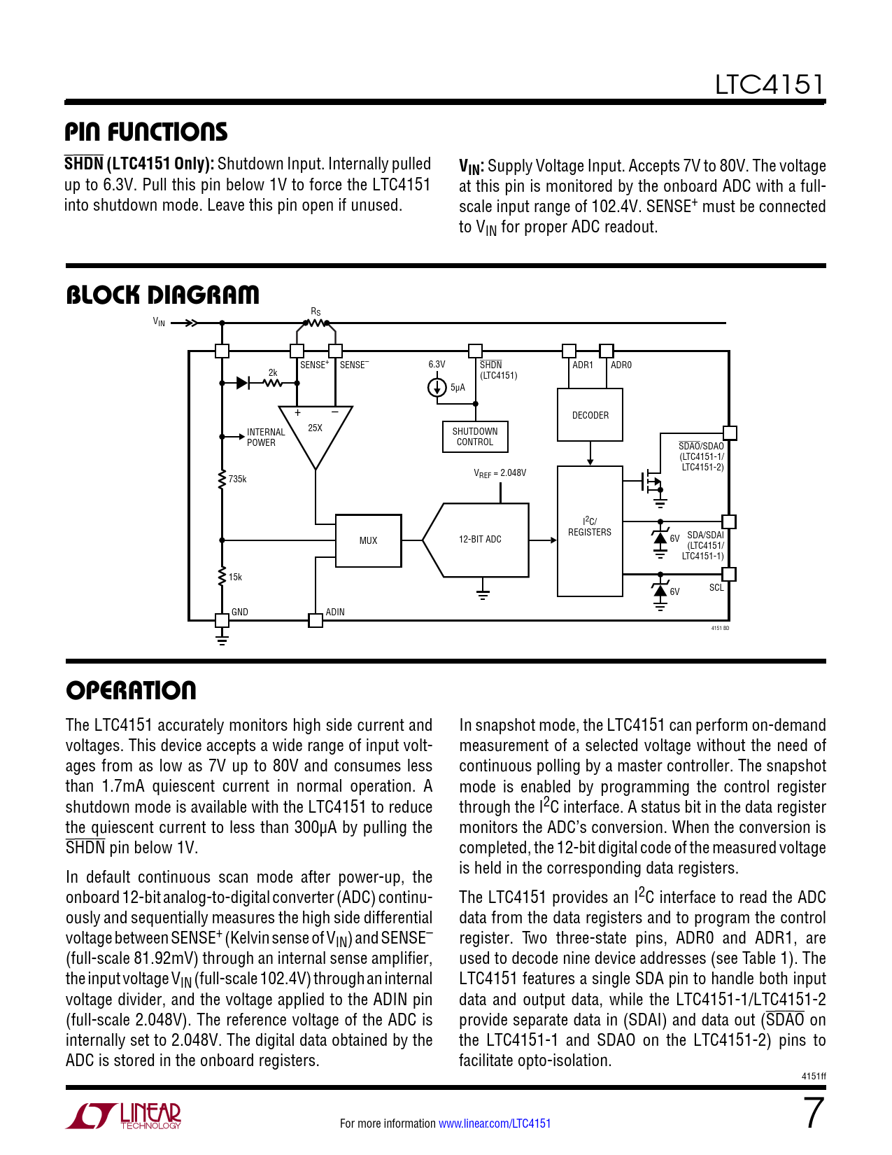 Pages / Page18 / 7 — pin FuncTions SHDN (LTC4151 Only):. VIN:. block DiagraM. operaTion