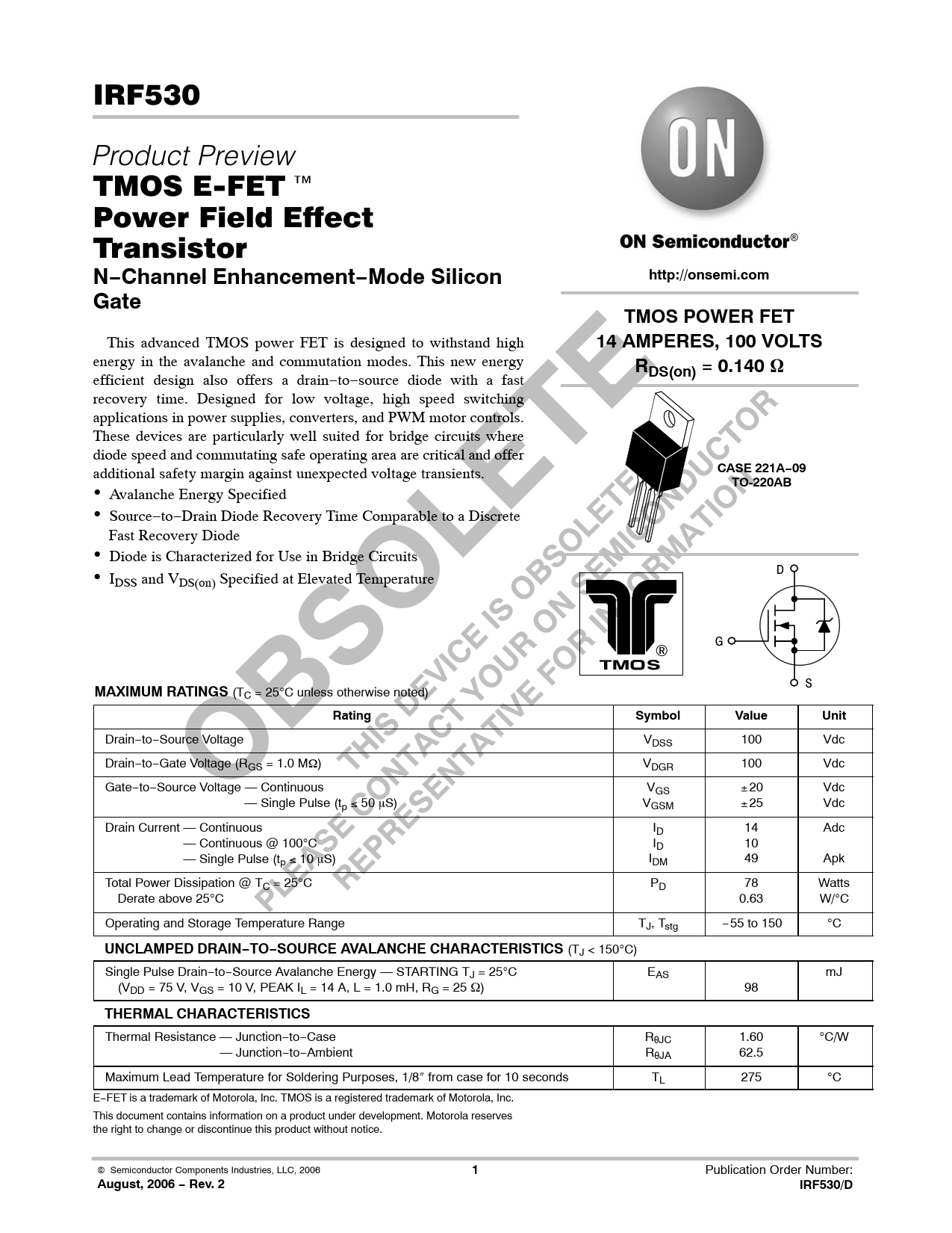 IRF530 Product Preview TMOS E−FET.™ Power Field Effect Transistor