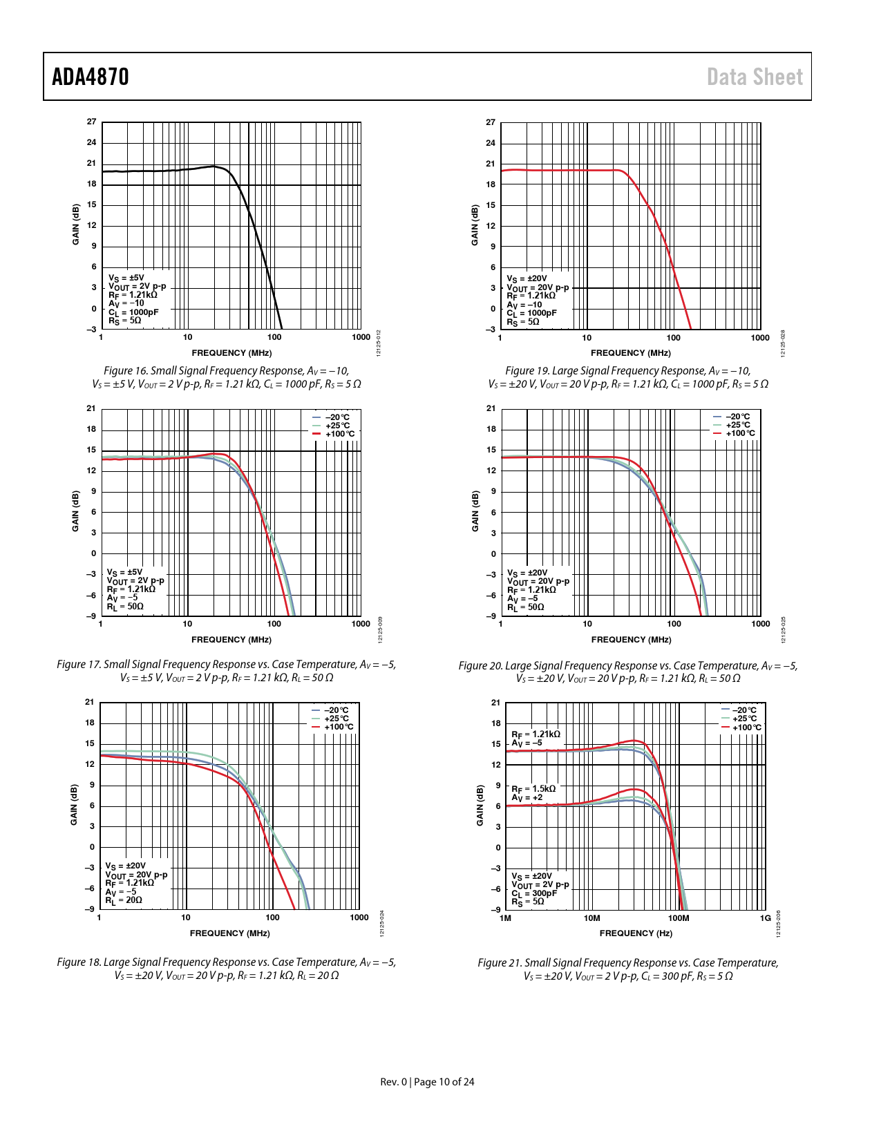 ADA4870. Data Sheet. N (. VS = ±5V. VS = ±20V. VOUT = 2V p-p. VOUT = 20V p-p. RF = 1.21kΩ. V = −10. AV = –10. L = 1000pF. CL = 1000pF. RS = 5Ω