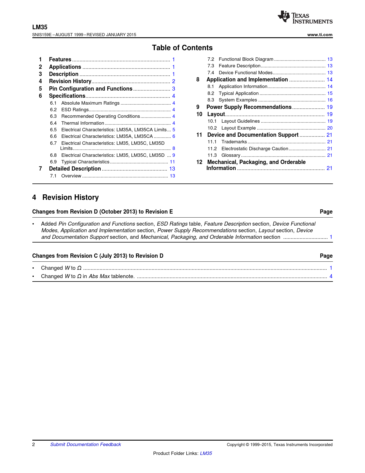 4 Revision History Changes from Revision D (October 2013) to Revision E Page