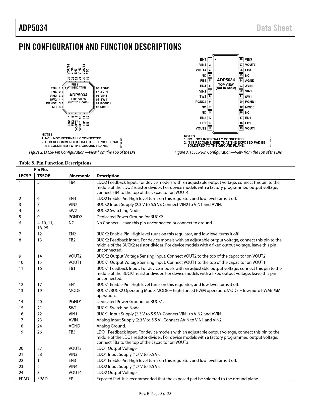 Pages / Page28 / 8 — ADP5034. Data Sheet. PIN CONFIGURATION AND FUNCTION DESCRIPTIONS. EN3. 28 …