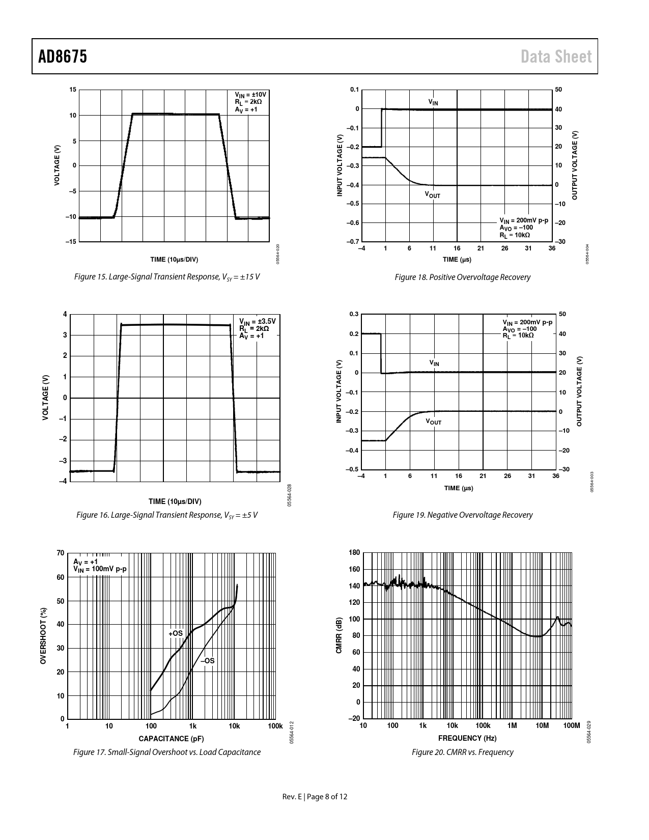 AD8675. Data Sheet. 0.1. VIN = ±10V RL = 2kΩ. VIN. AV = +1. –0.1. ( –0.2. E (V) G A. –0.3. OLTA. T V. U –0.4. VOUT. –0.5. –10. –0.6. VIN = 200mV p-p –20