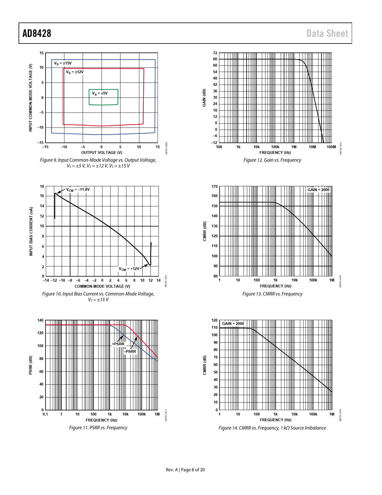 AD8428. Data Sheet. 72 66. S = ±15V. ( E. S = ±12V. A T. V E. B d. S = ±5V. T C U. –10. –15. –12. 100. 10k. 100k. 10M. 100M. OUTPUT VOLTAGE (V). FREQUENCY (Hz)