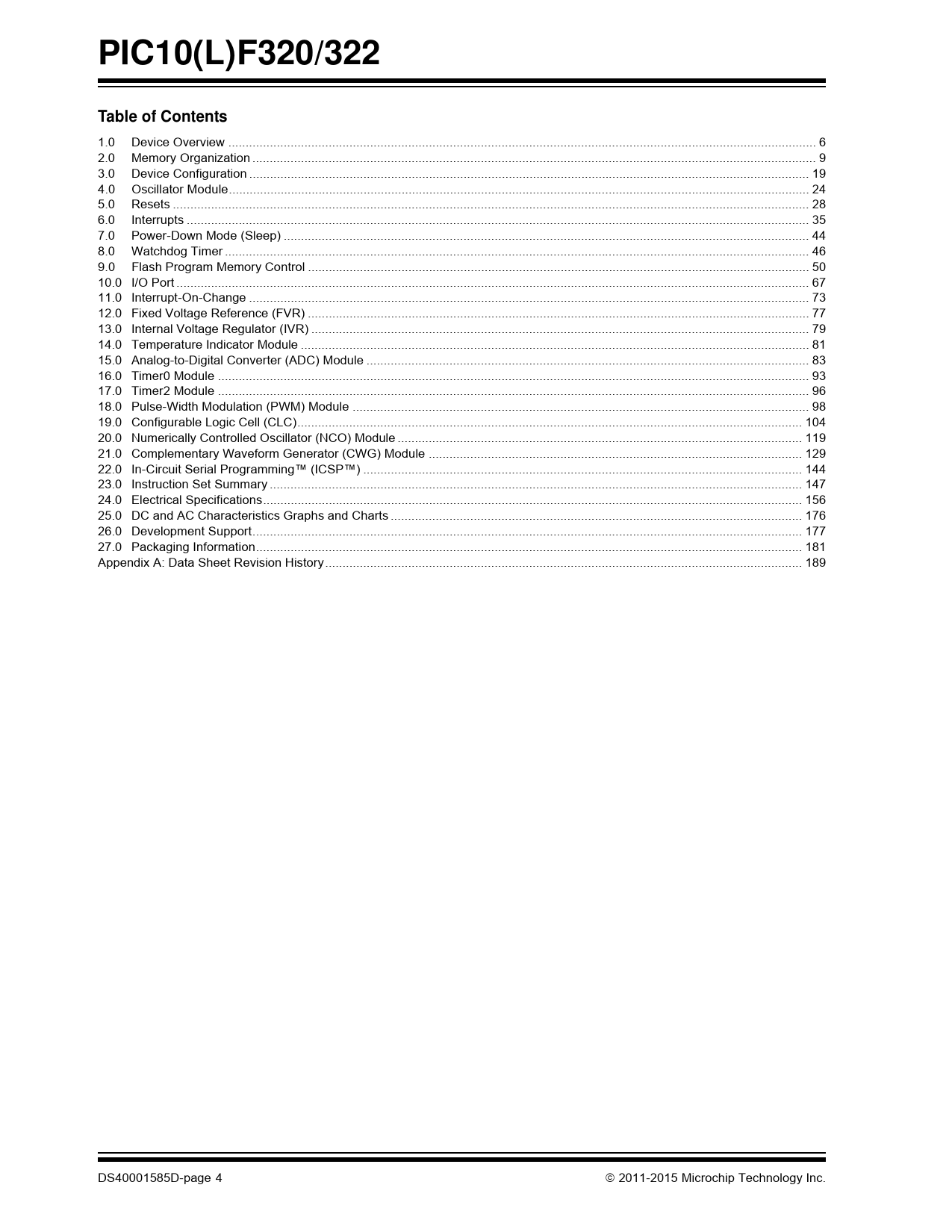 | Pages / Page | 193 / 4 — PIC10(L)F320/322. Table of Contents |