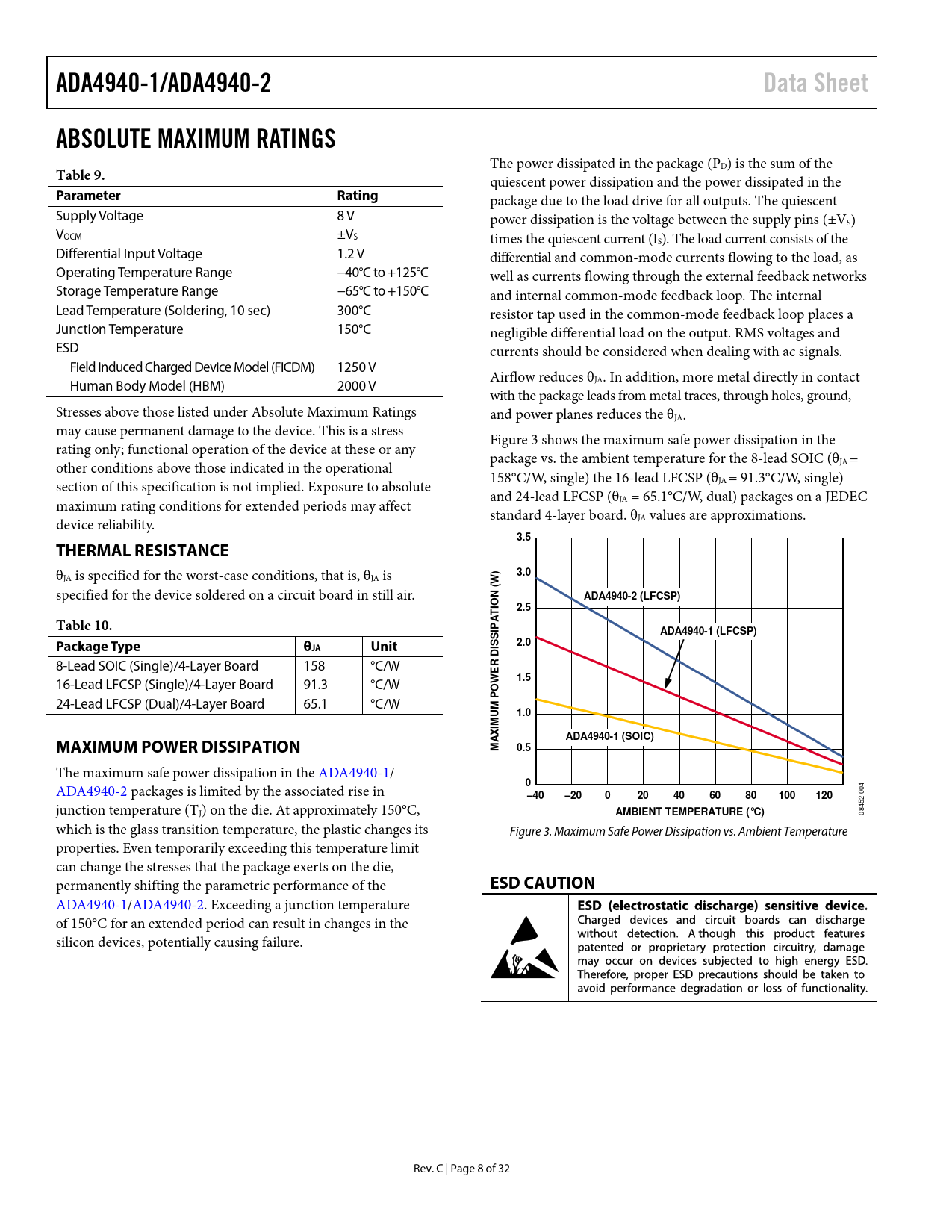 ADA4940-1/ADA4940-2. Data Sheet. ABSOLUTE MAXIMUM RATINGS. Table 9. Parameter. Rating. 3.5. THERMAL RESISTANCE. 3.0. (W N