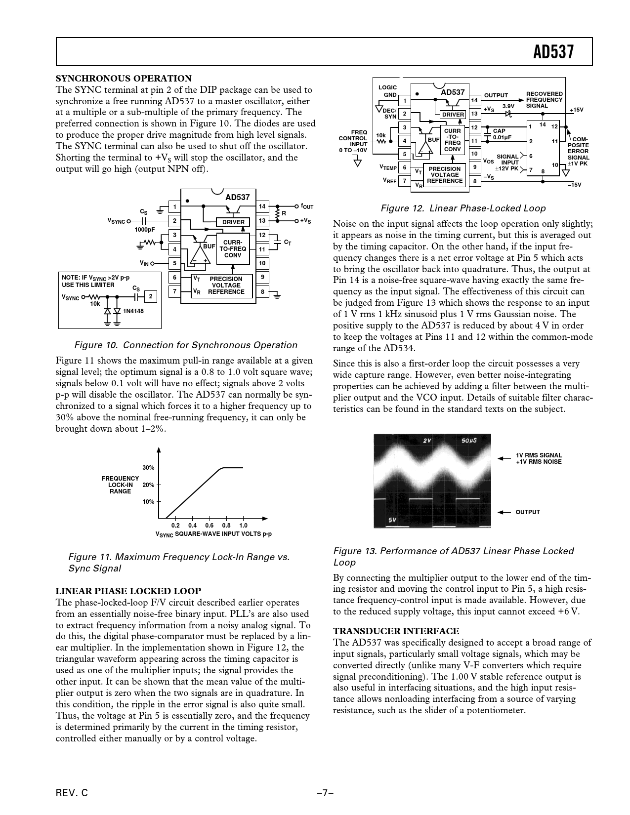 Pages / Page8 / 7 — AD537. SYNCHRONOUS OPERATION. LOGIC. GND. OUTPUT. RECOVERED. FREQUENCY. …