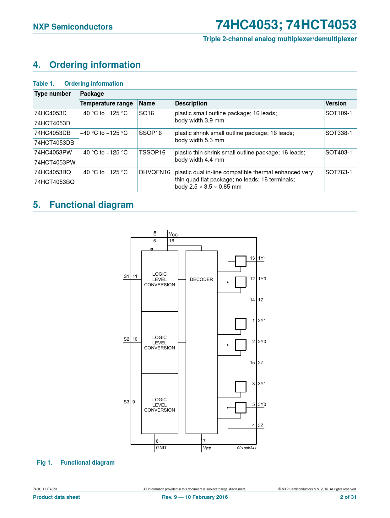 NXP Semiconductors. 74HC4053; 74HCT4053. Triple 2-channel analog multiplexer/demultiplexer. 4. Ordering. information. Table 1