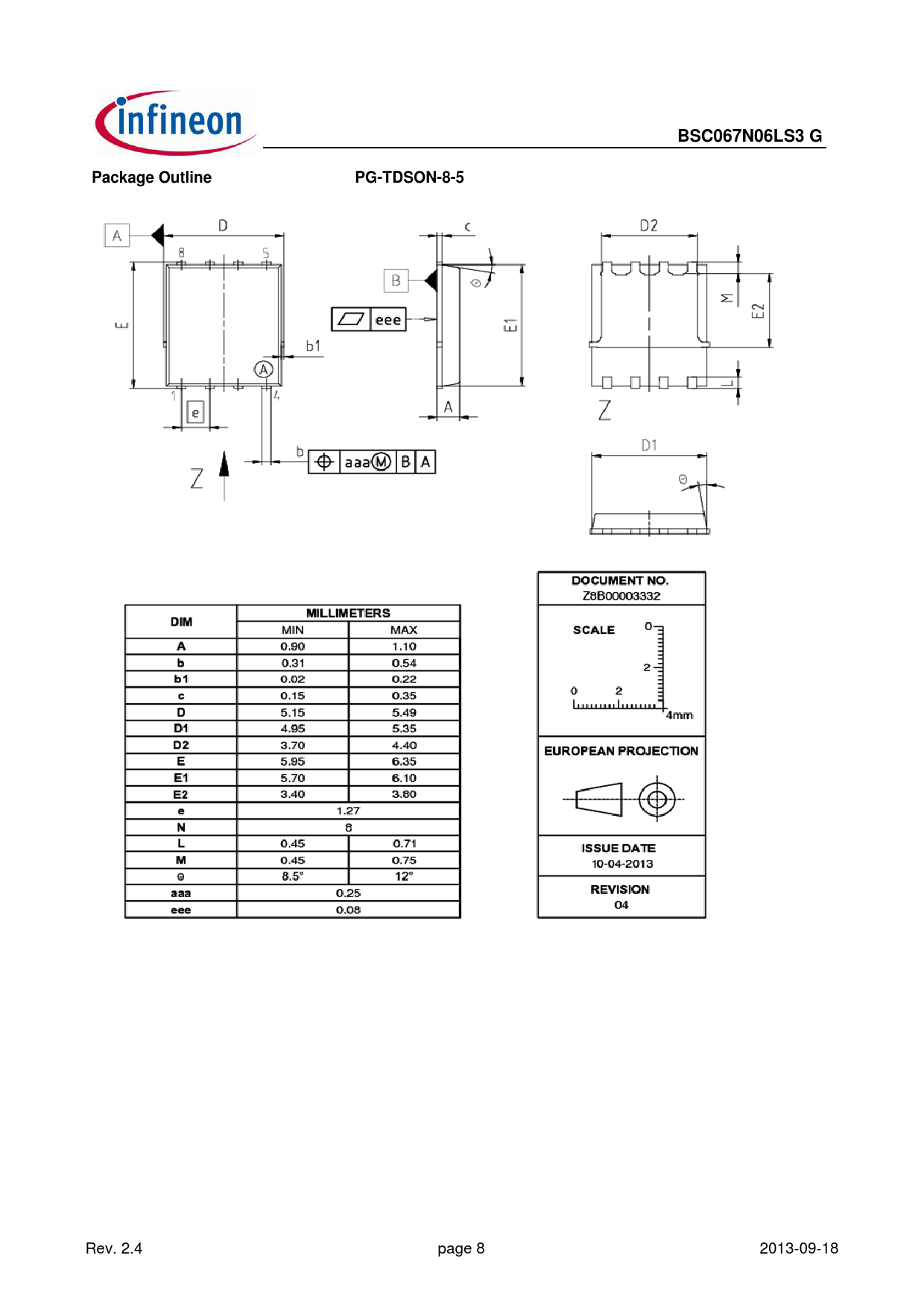 | Pages / Page | 10 / 8 — BSC067N06LS3 G. Package Outline. PG-TDSON-8-5 |