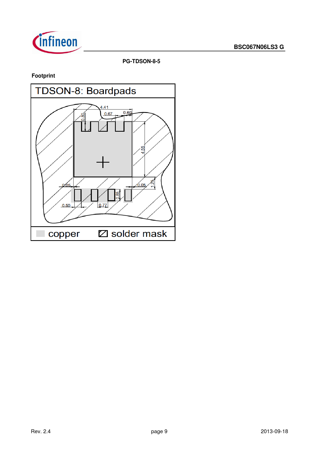 | Pages / Page | 10 / 9 — BSC067N06LS3 G. PG-TDSON-8-5. Footprint |