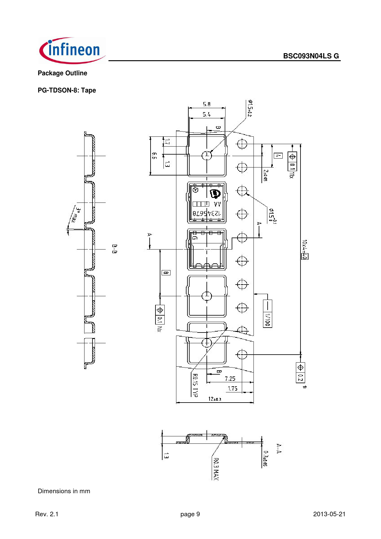 BSC093N04LS G. Package Outline. PG-TDSON-8: Tape