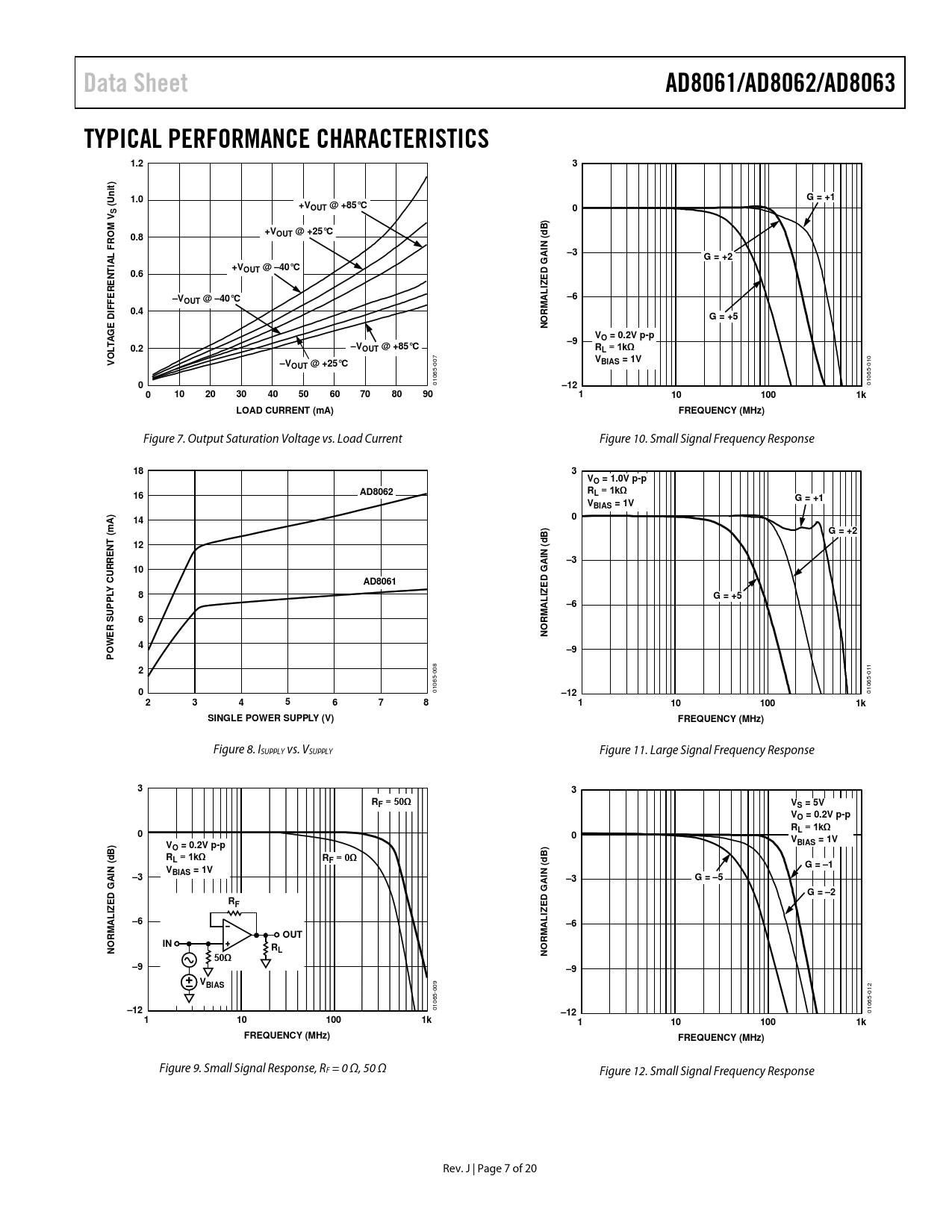 | Pages / Page | 20 / 7 — Data Sheet. AD8061/AD8062/AD8063. TYPICAL PERFORMANCE CHARACTERISTICS. … |