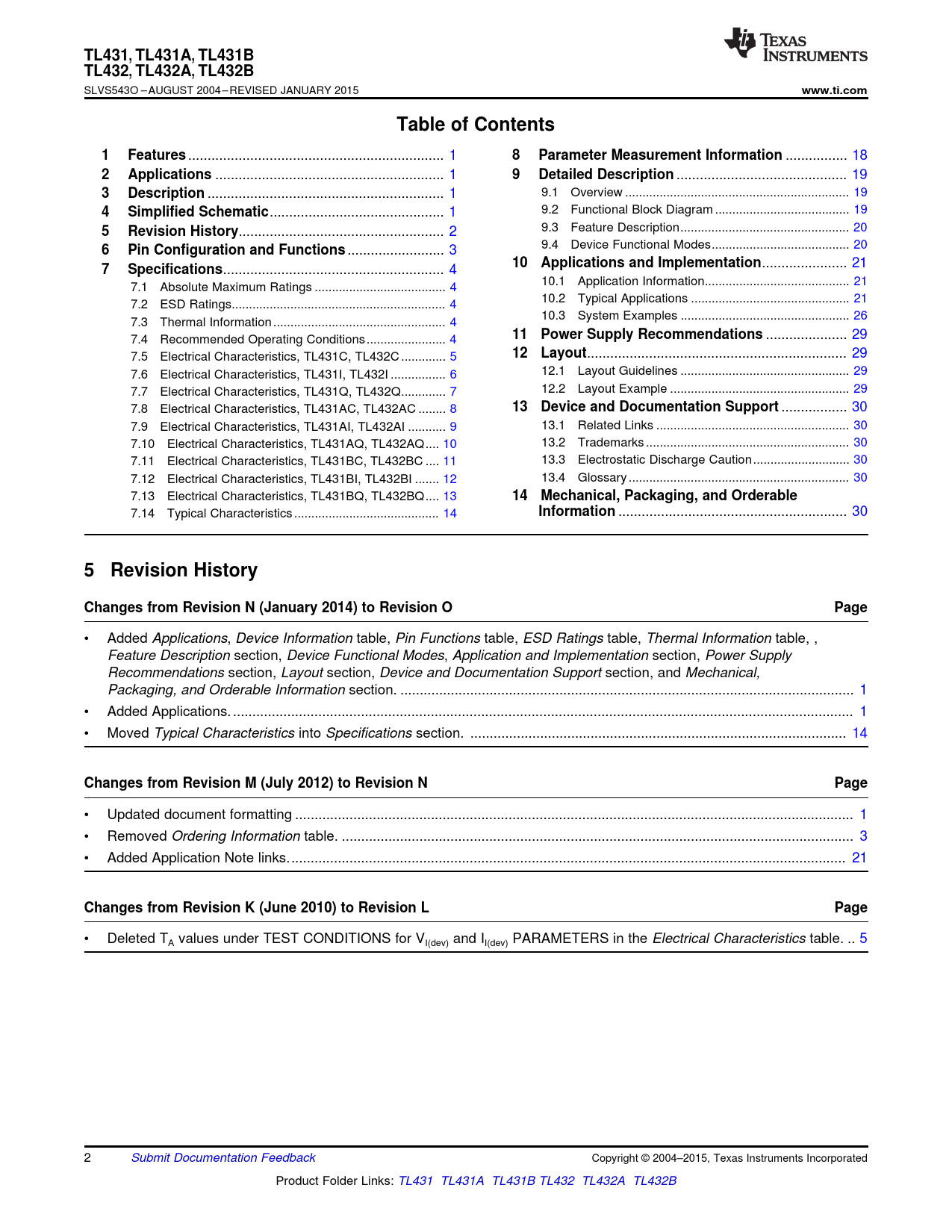 5 Revision History Changes from Revision N (January 2014) to Revision O Page