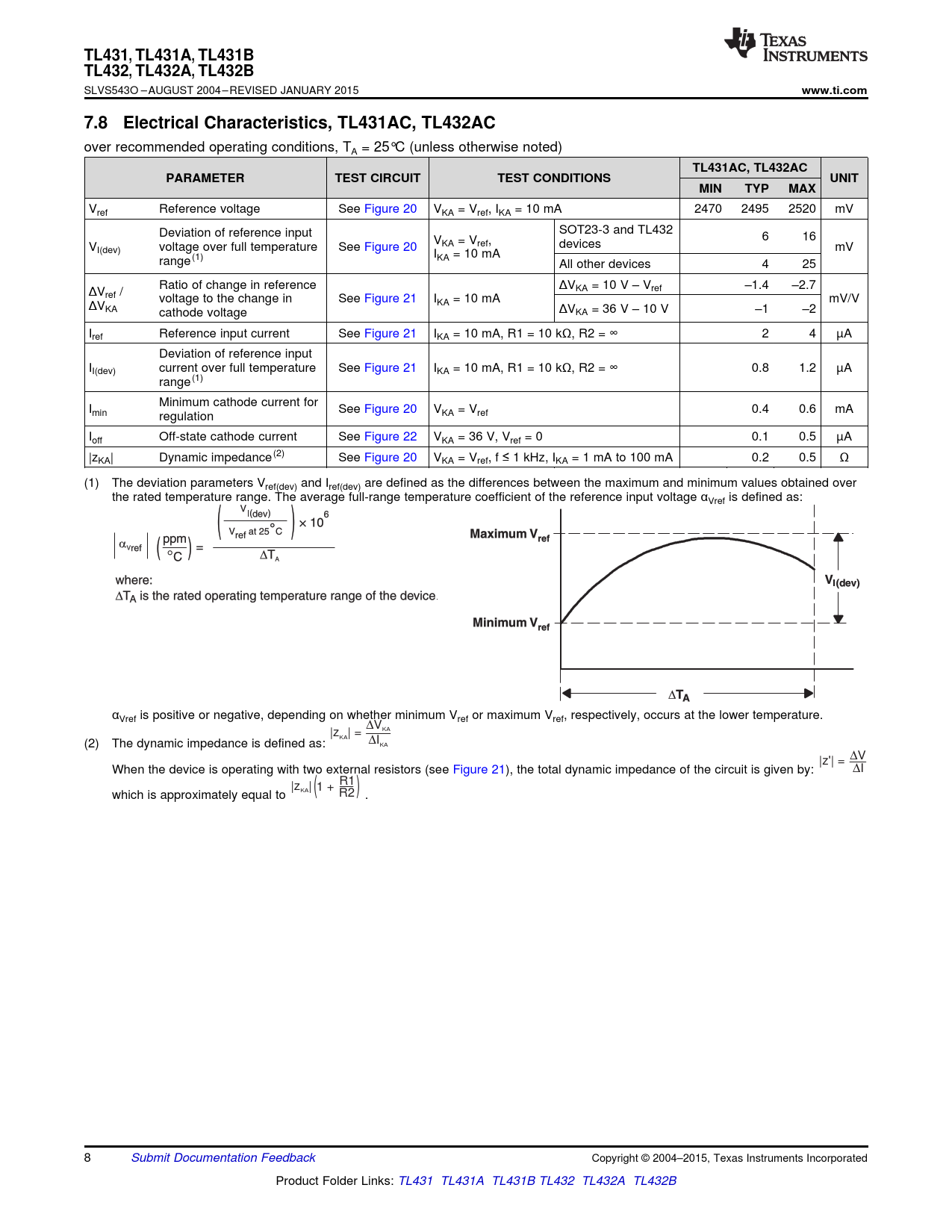 Datasheet TL431, TL431A, TL431B, TL432, TL432A, TL432B (Texas Instruments) - 8
