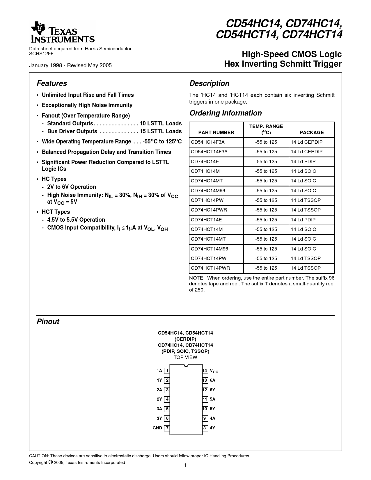 DatasheetsDatasheet CD54HC14, CD74HC14, CD54HCT14, …