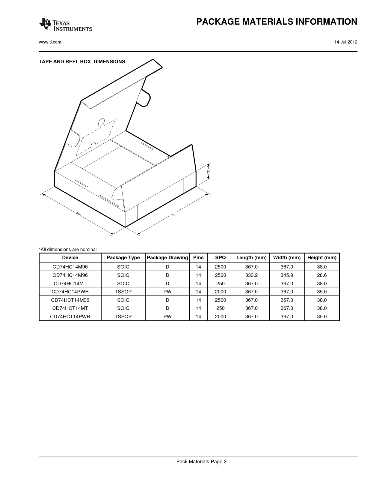 www.ti.com 14-Jul-2012 *All dimensions are nominal