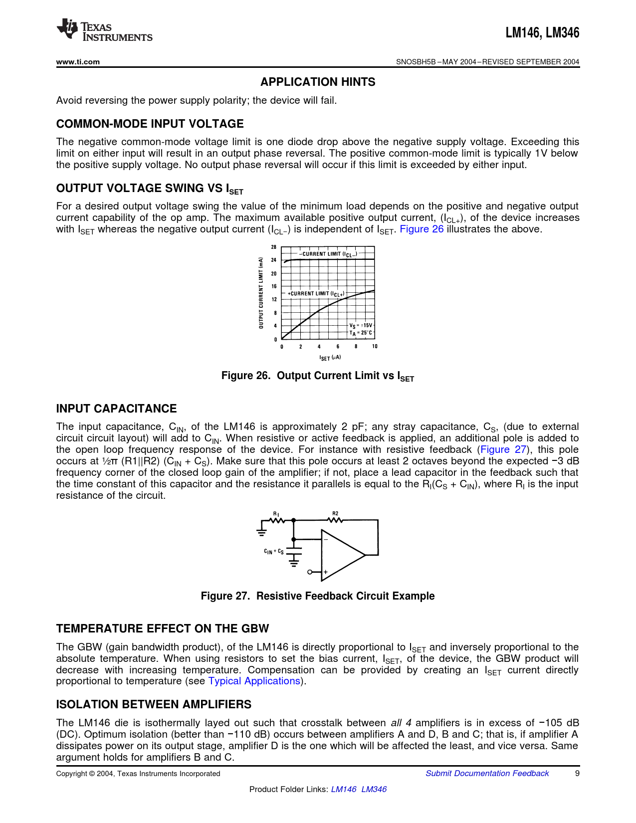 | Pages / Page | 24 / 9 — LM146,. LM346. www.ti.com. APPLICATION HINTS. COMMON-MODE INPUT VOLTAGE. … |