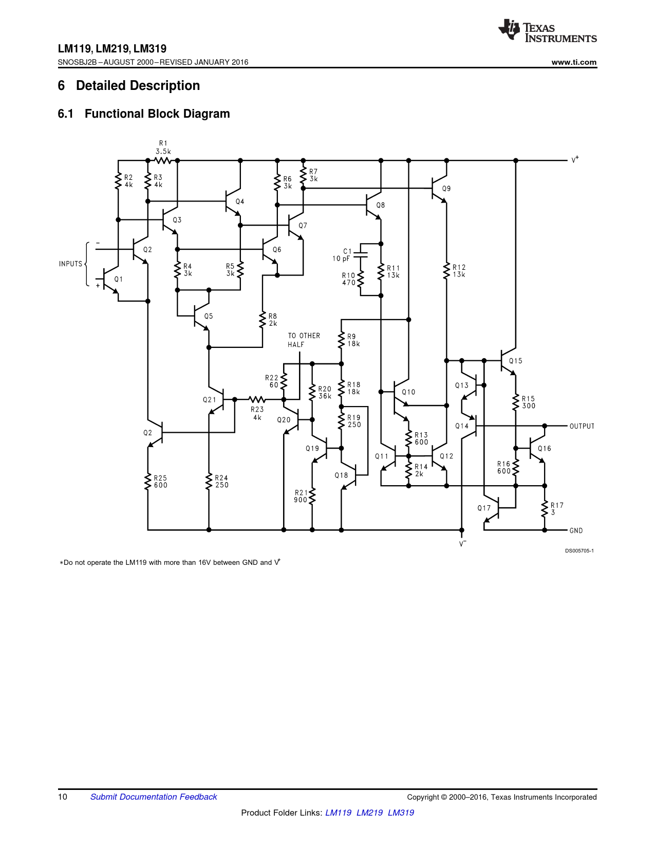 LM119,. LM219,. LM319. www.ti.com. 6 Detailed Description. 6.1 Functional Block Diagram