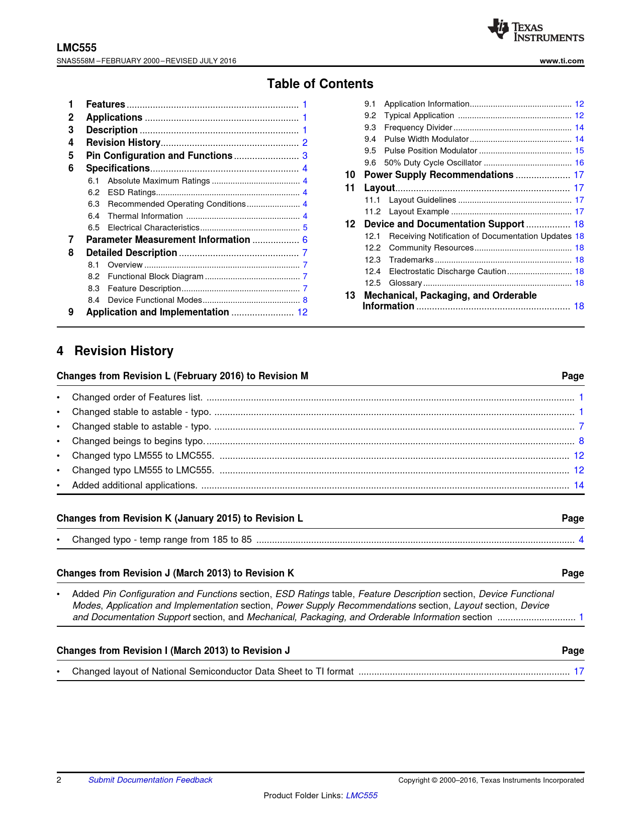 | Pages / Page | 30 / 2 — LMC555. www.ti.com. Table of Contents. Features. Applications. … |