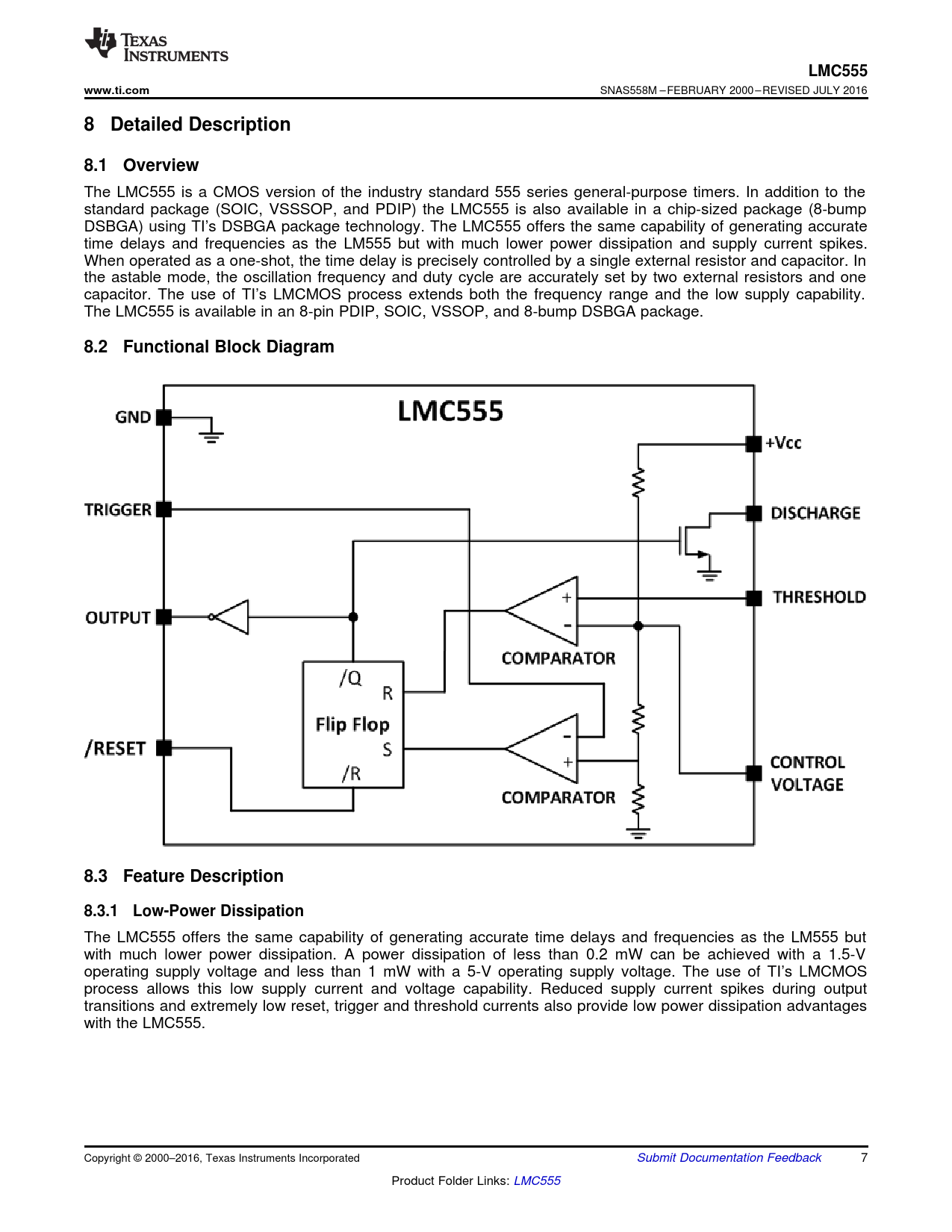 LMC555. www.ti.com. 8 Detailed Description. 8.1 Overview. 8.2 Functional Block Diagram. 8.3 Feature Description