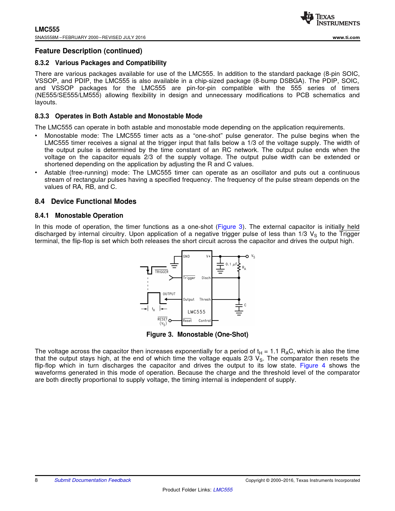 | Pages / Page | 30 / 8 — LMC555. www.ti.com. Feature Description (continued). 8.3.2 Various … |