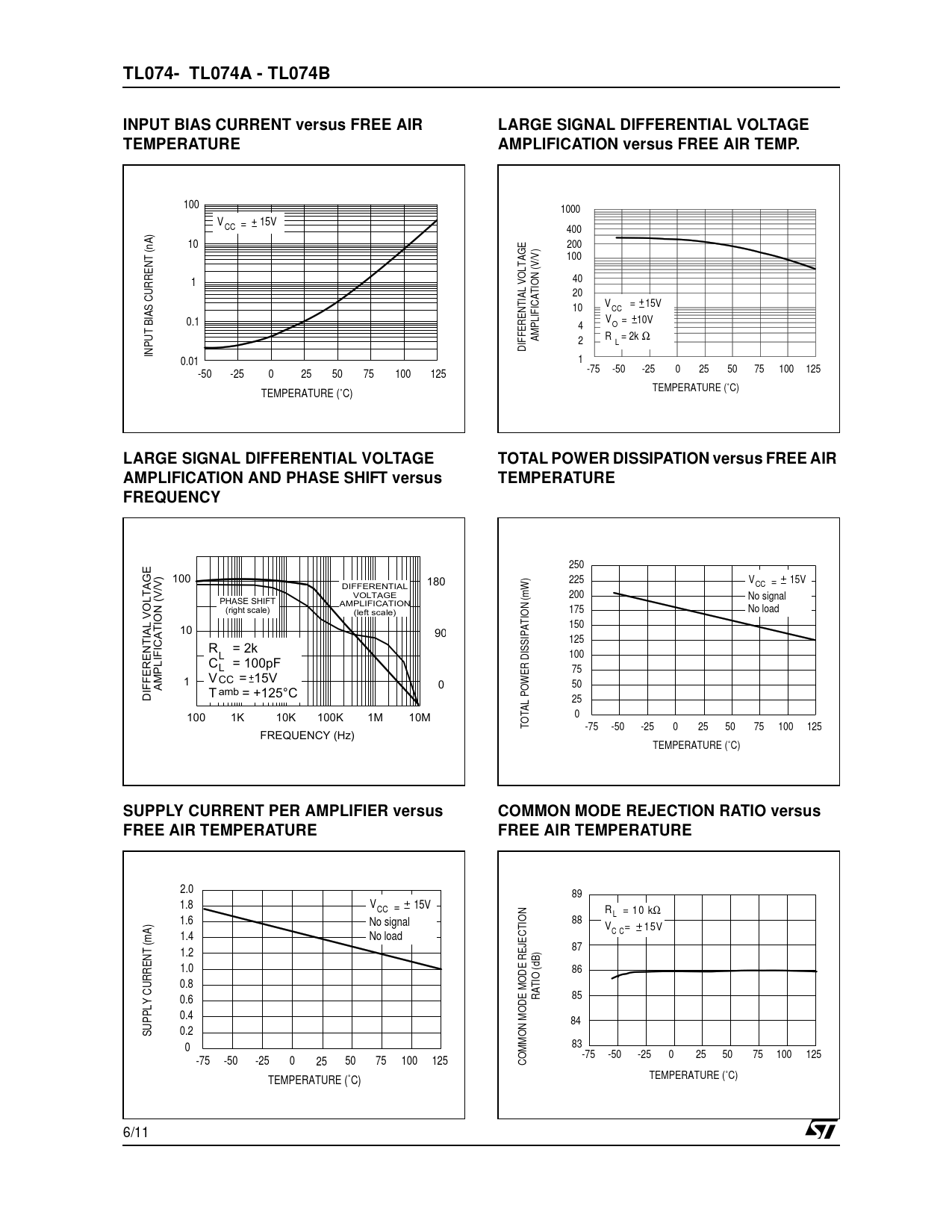 TL074- TL074A - TL074B. INPUT BIAS CURRENT versus FREE AIR. LARGE SIGNAL DIFFERENTIAL VOLTAGE. TEMPERATURE
